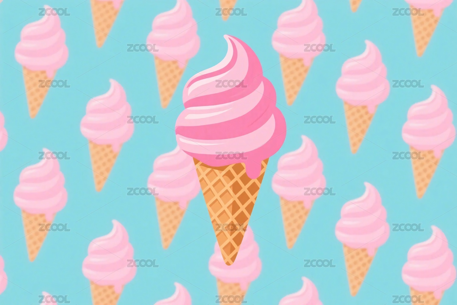 夏天蓝色背景中的冰淇淋和棕榈叶清凉背景