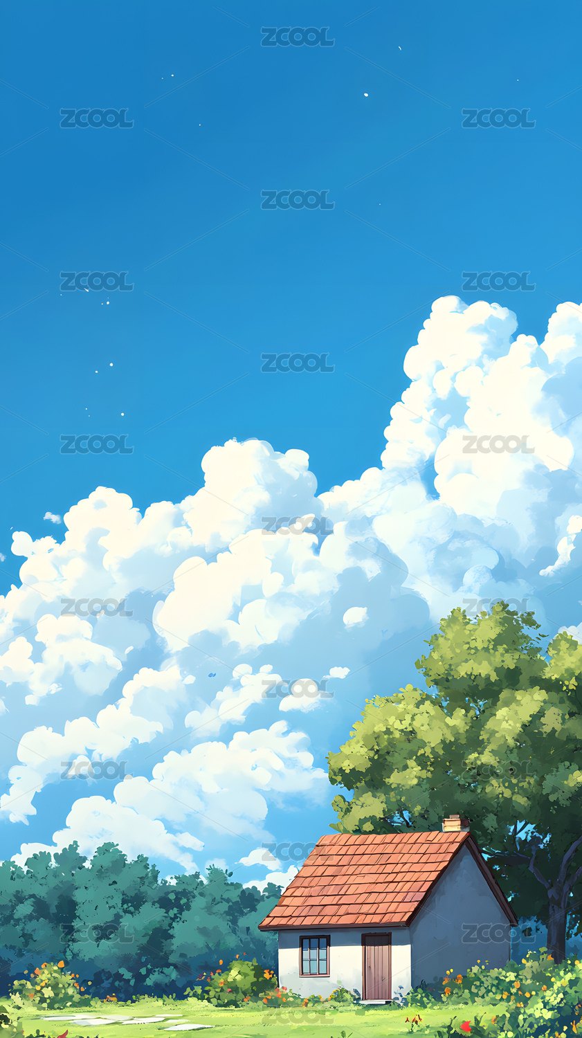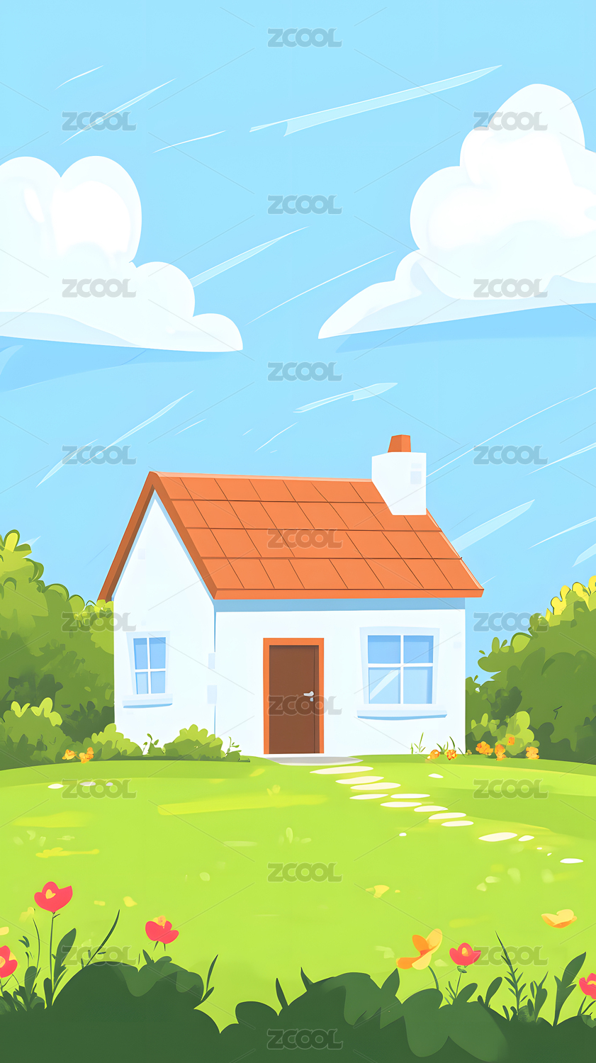 天空房子和草地