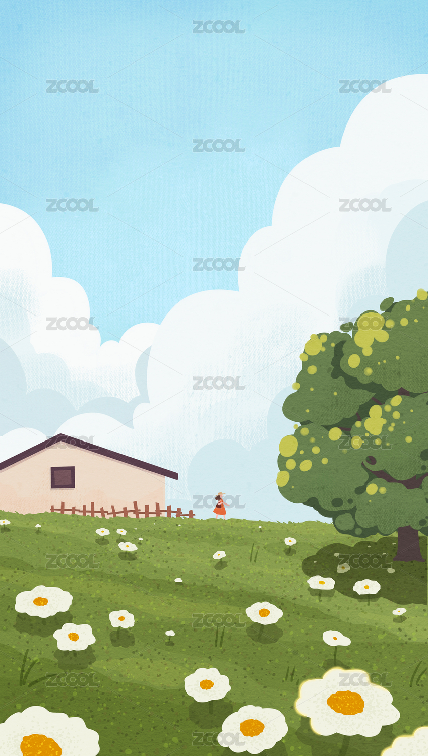 风景,蓝天,白云,插画,风景插画