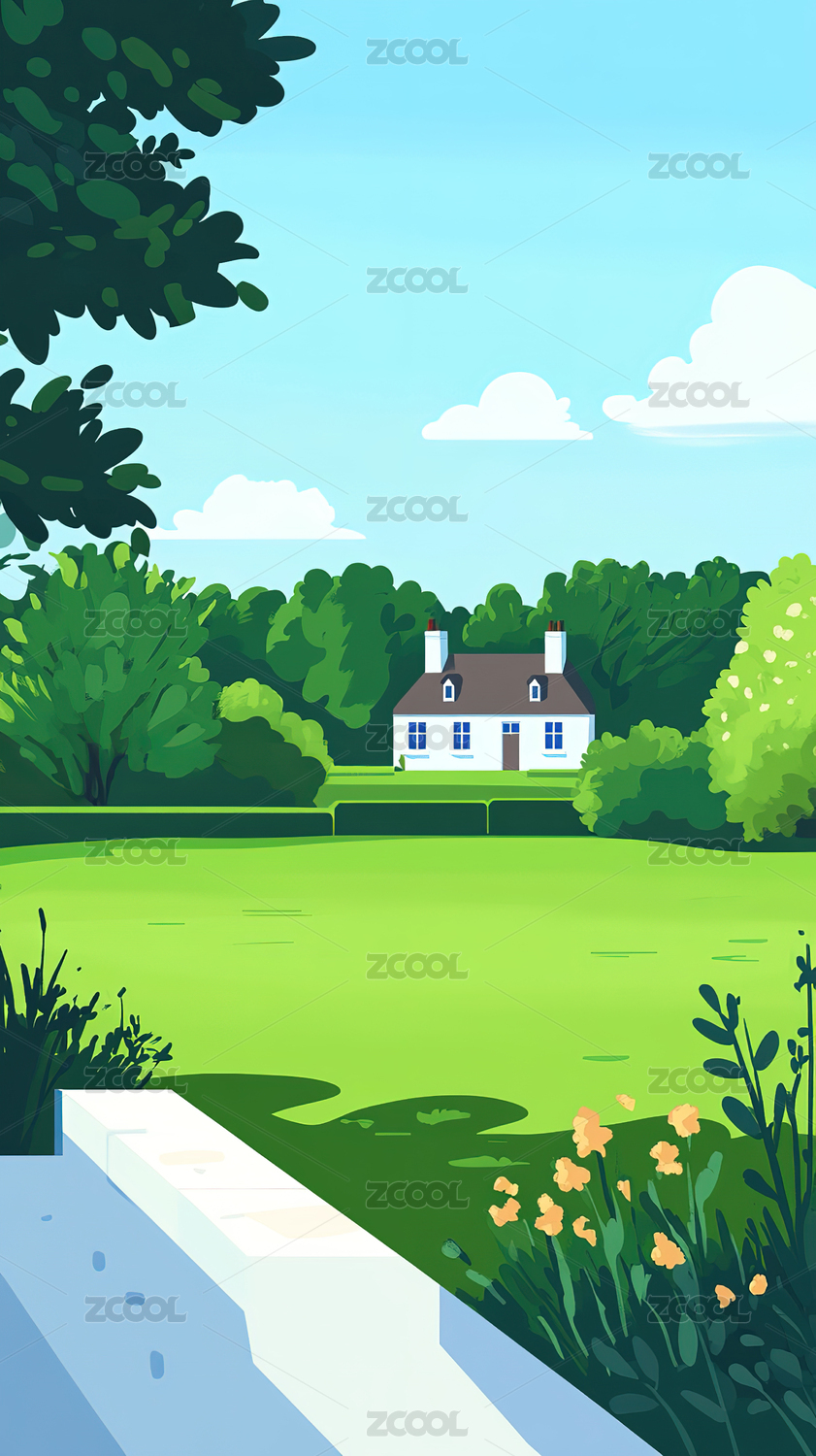 天空现代别墅卡通插画
