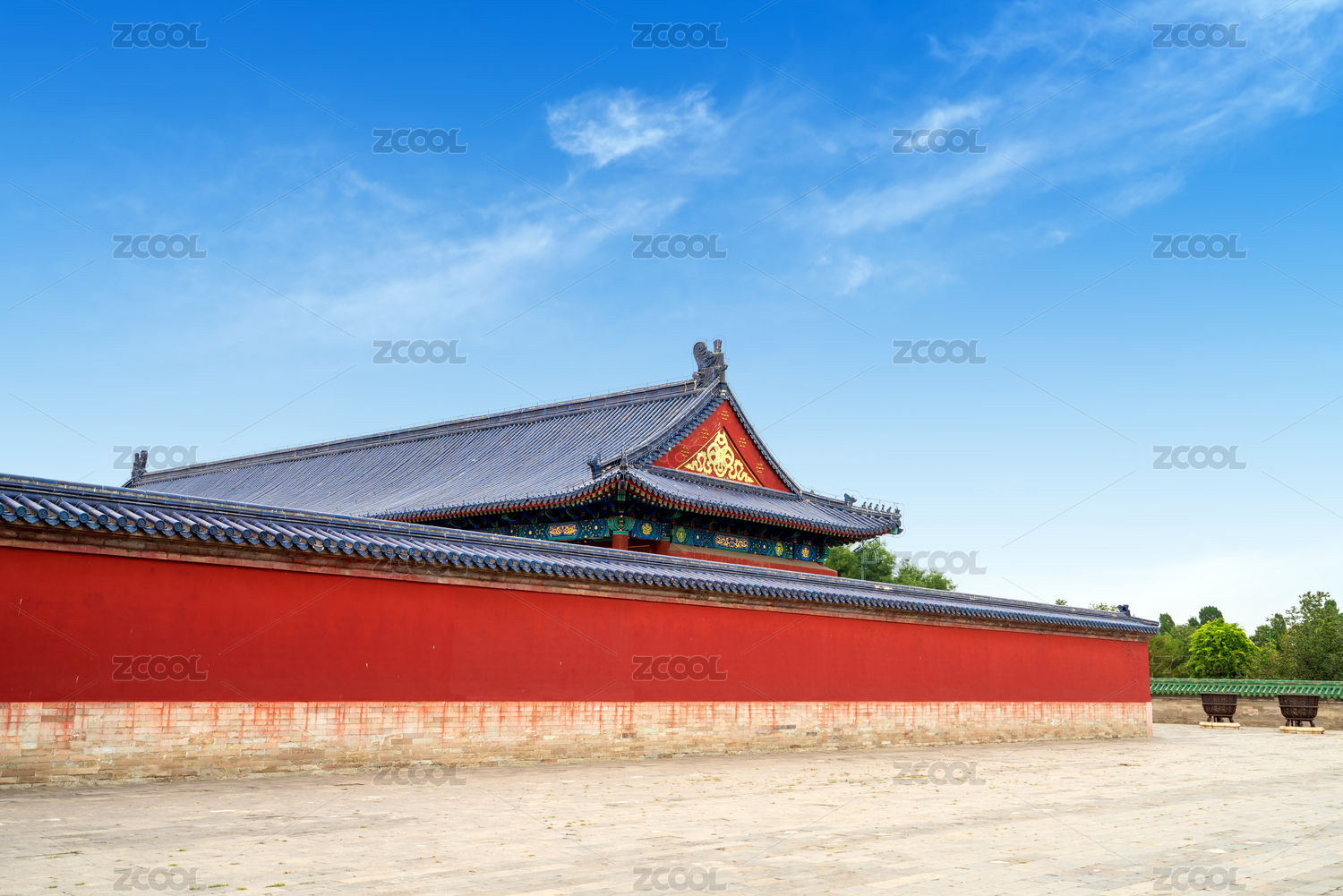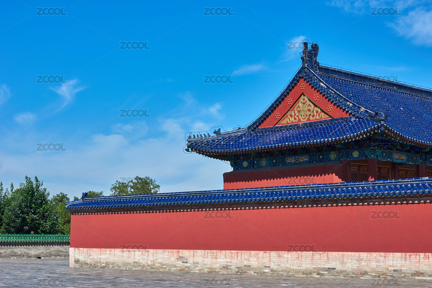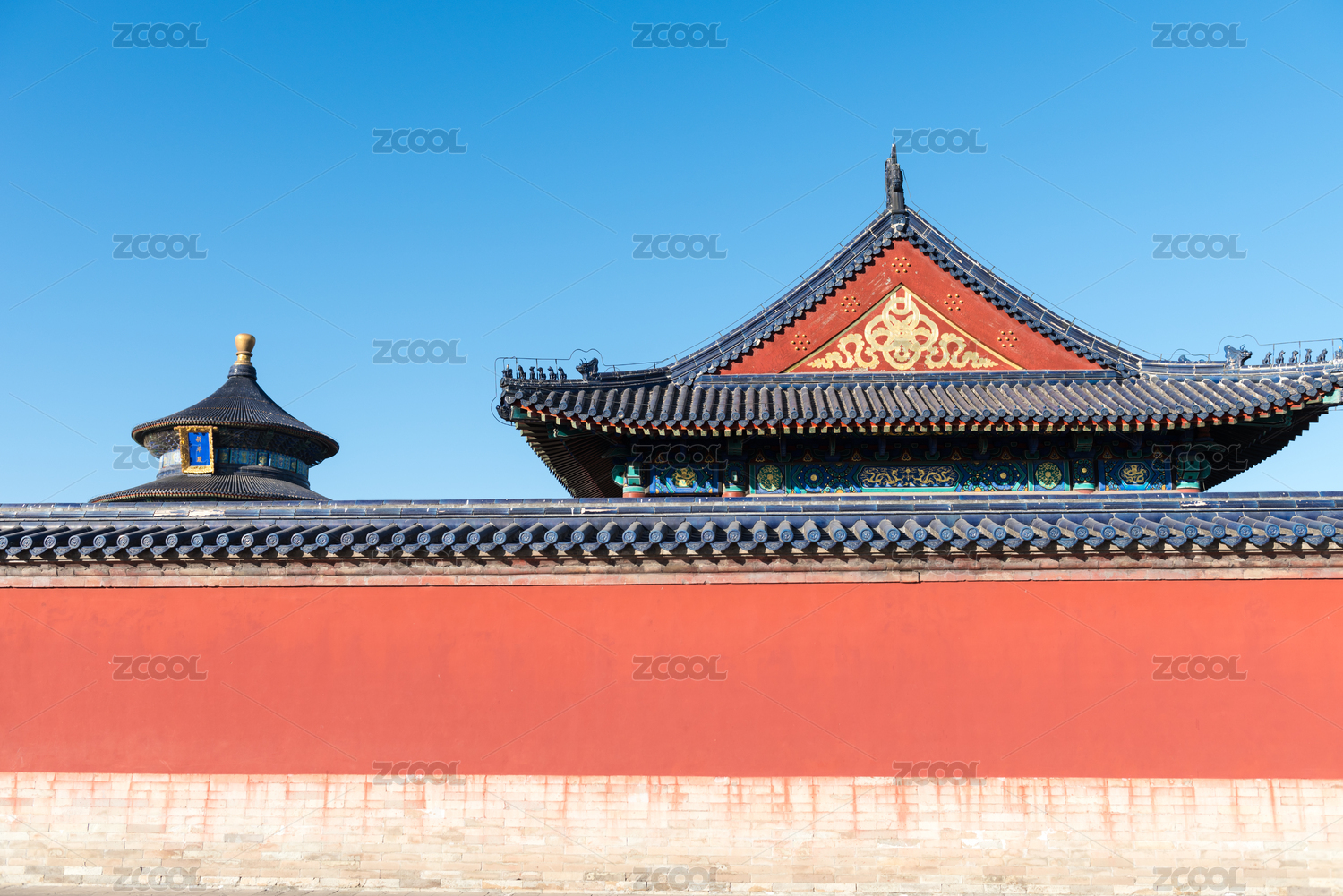 蓝天下天坛古建筑红墙背景