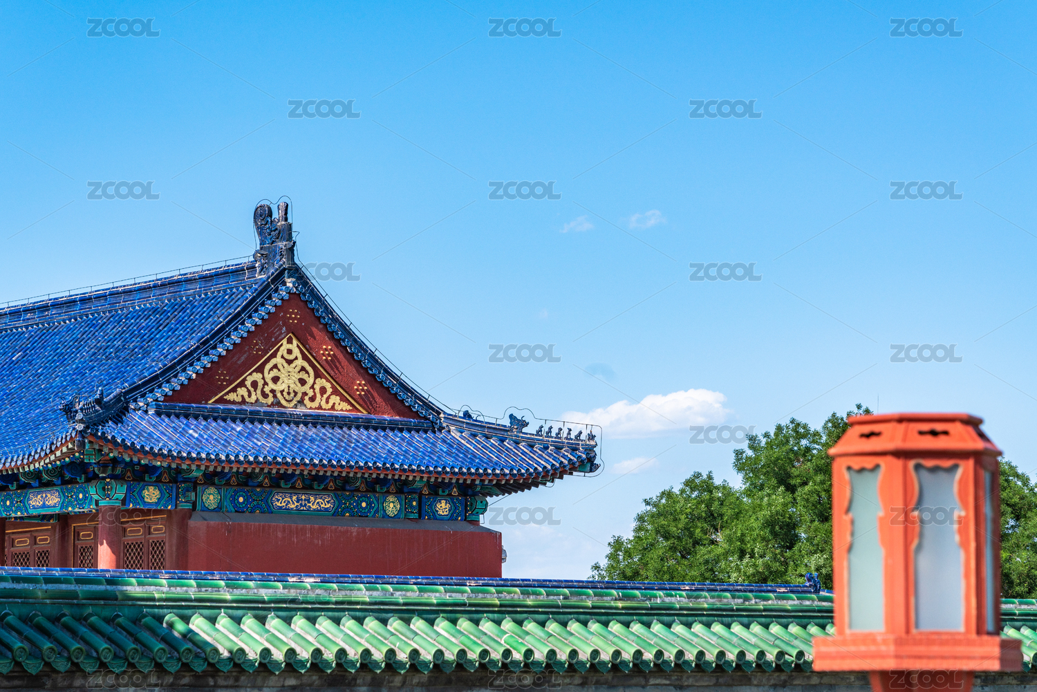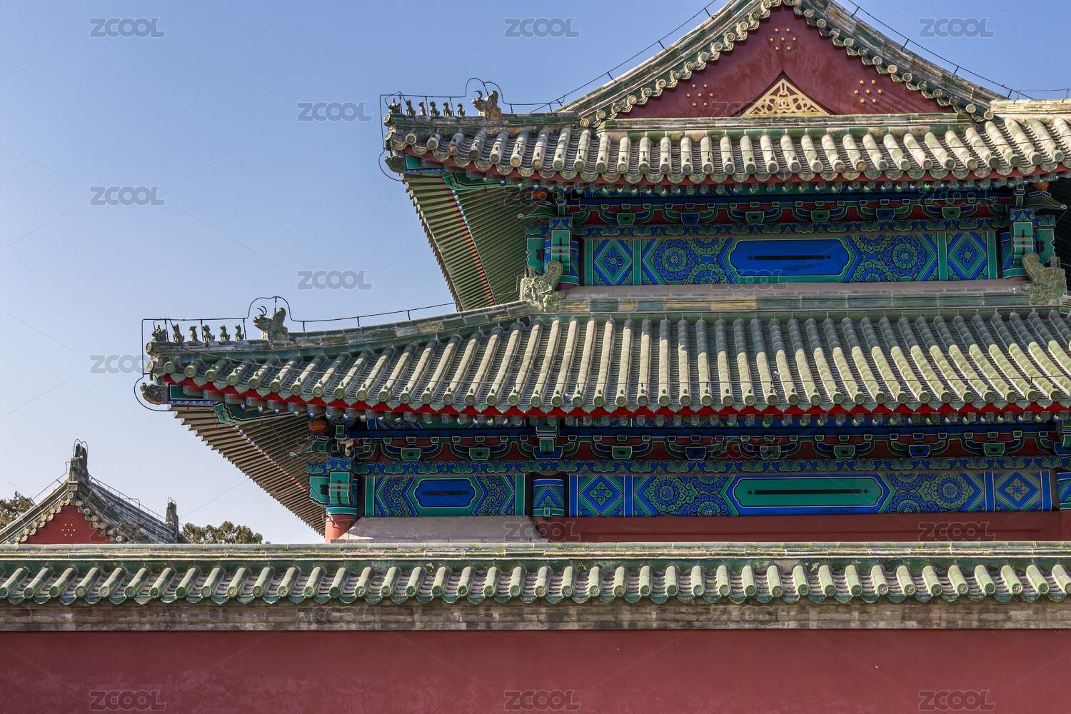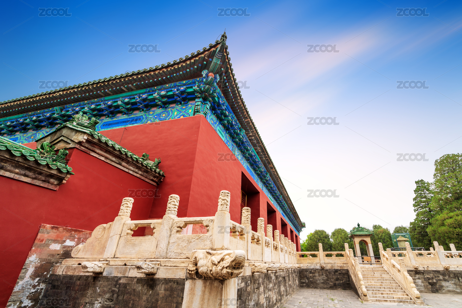 蓝天下天坛古建筑红墙背景