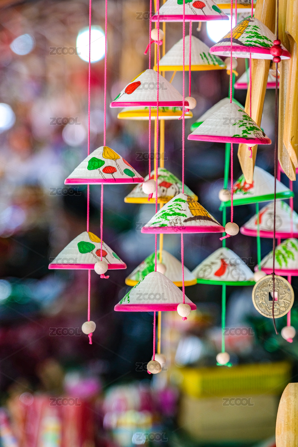 越南会安夜市上的纪念品越南风情的风铃