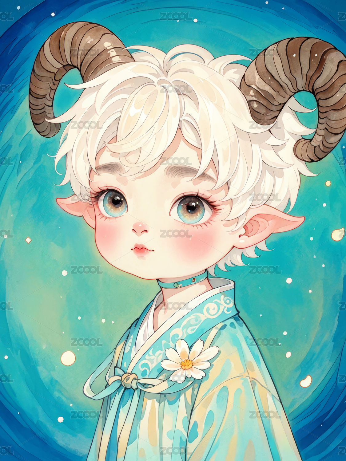 十二星座,怪诞童话,膨胀风格,卡通,黑色,紫色,梦幻,男孩,白羊座