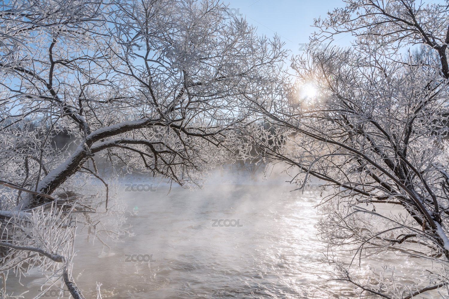 中国黑龙江伊春库尔滨冬季雾凇自然景观