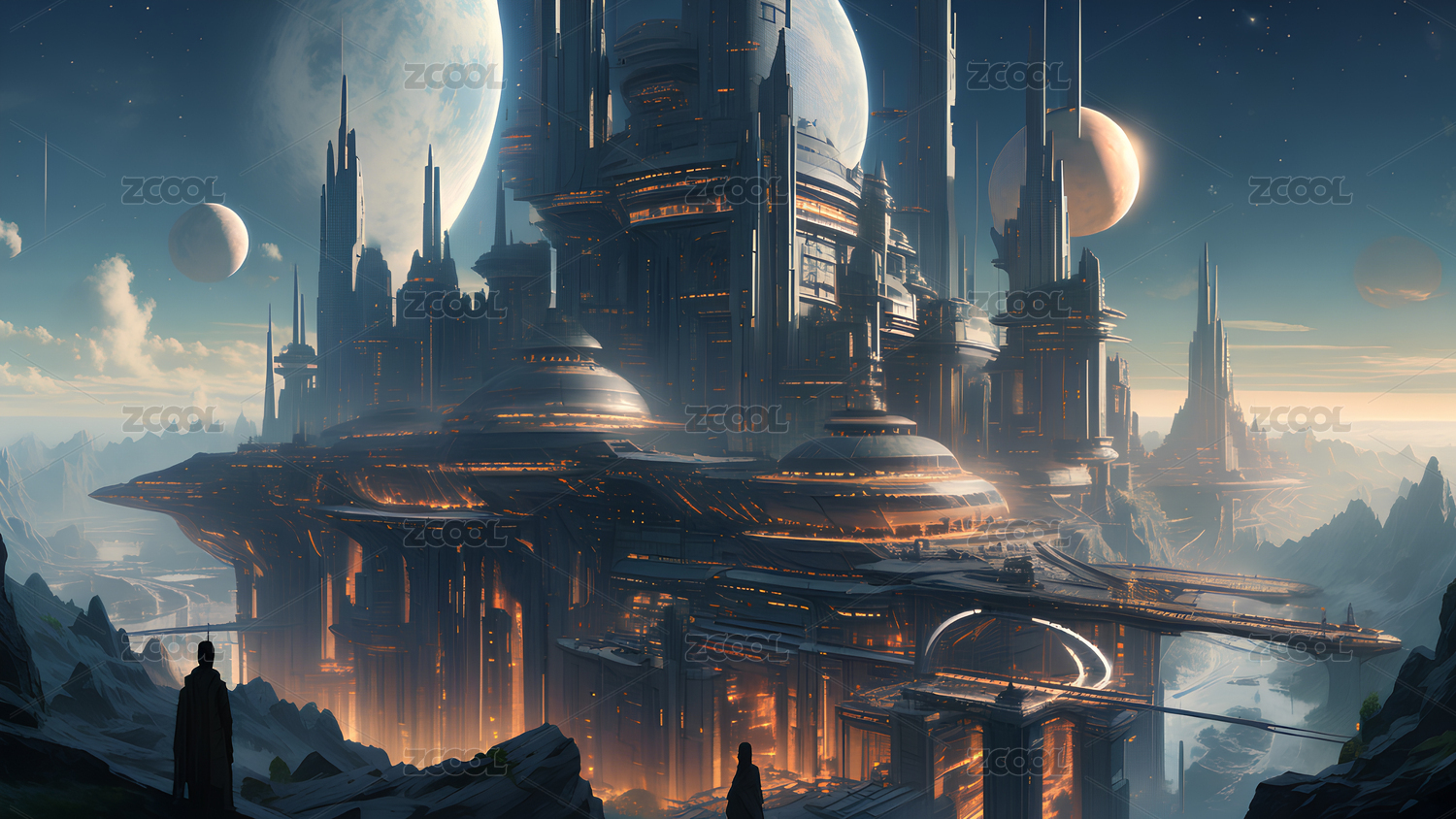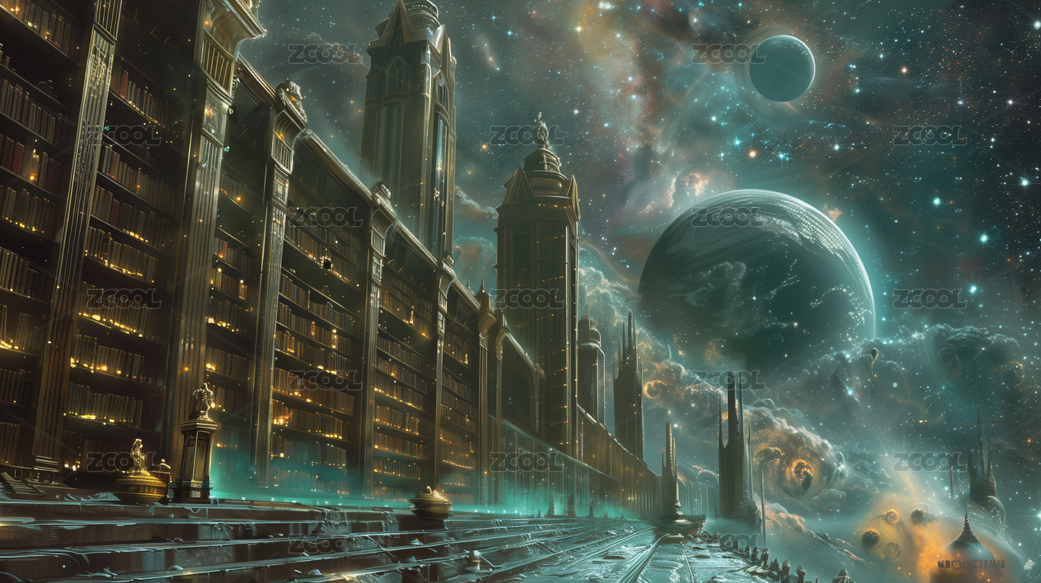 星际图书馆宇宙建筑梦幻AI数字艺术创意设