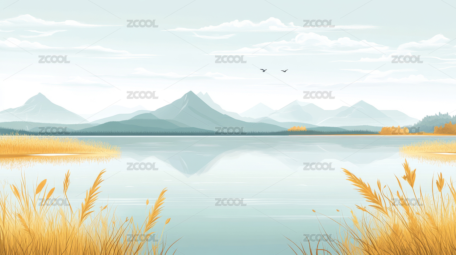湖泊,淡雅,水彩,水墨画,平静,祥和,自然,意境,优雅,宁静
