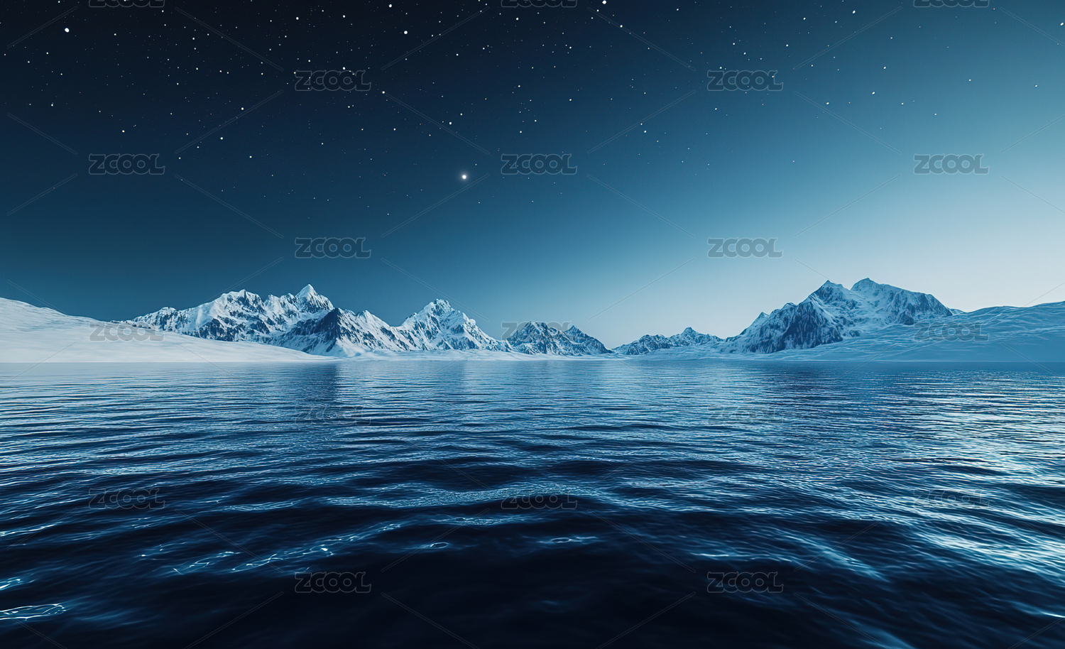 雪山湖面与夜晚的银河三维渲染