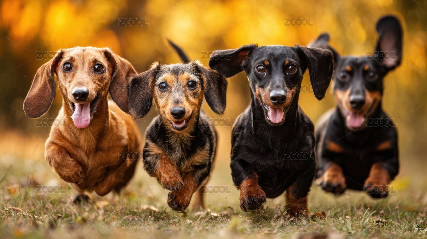 阳光下,可爱的小狗在草地上快乐的奔跑