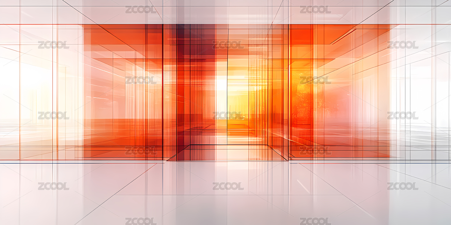 蓝橙色极简玻璃建筑场景