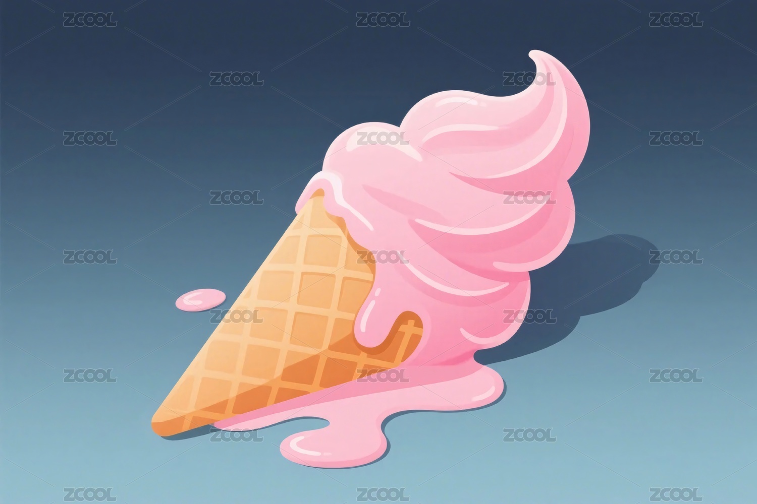 粉色巧克力冰淇淋3D渲染夏季小吃插图