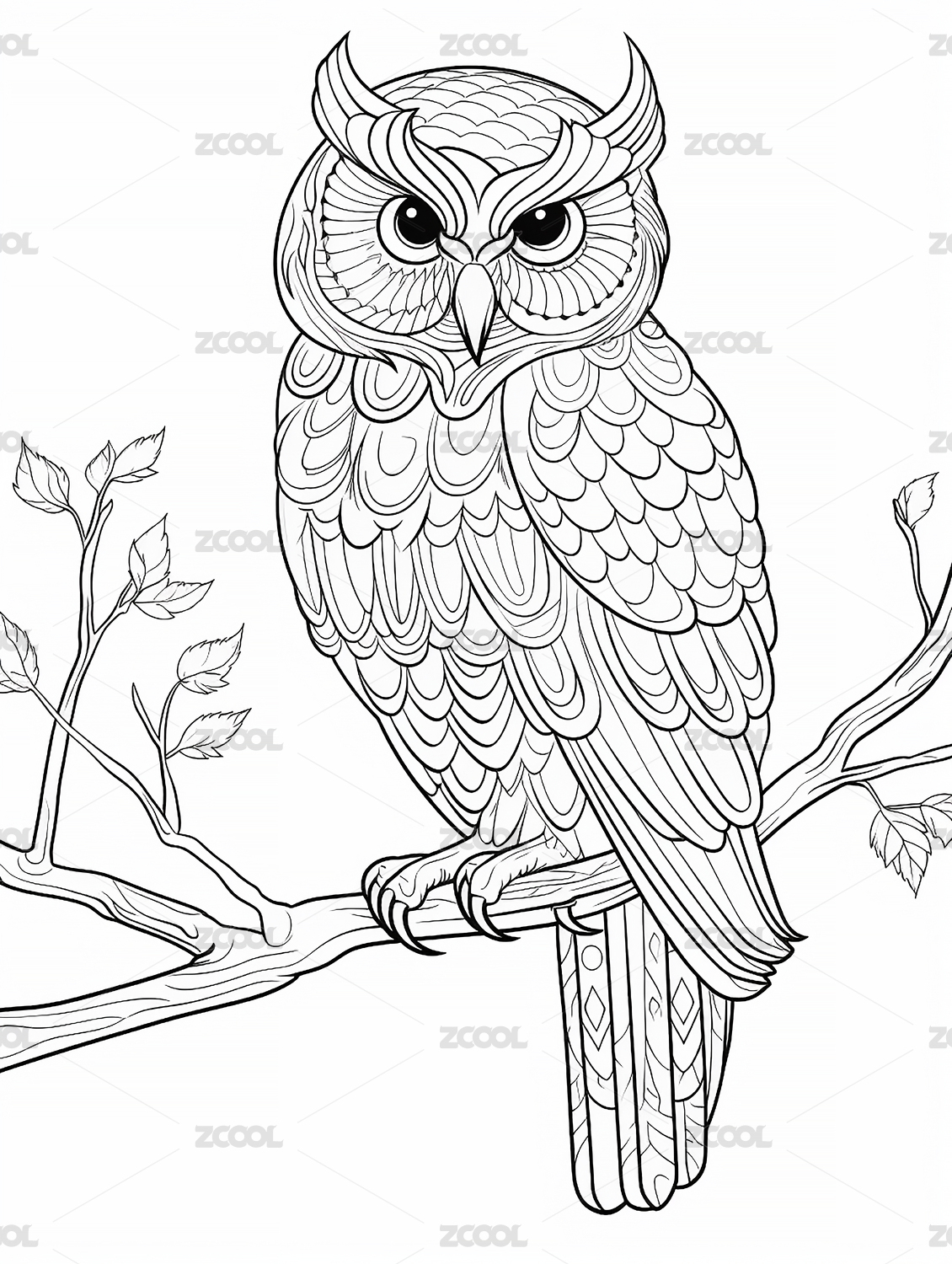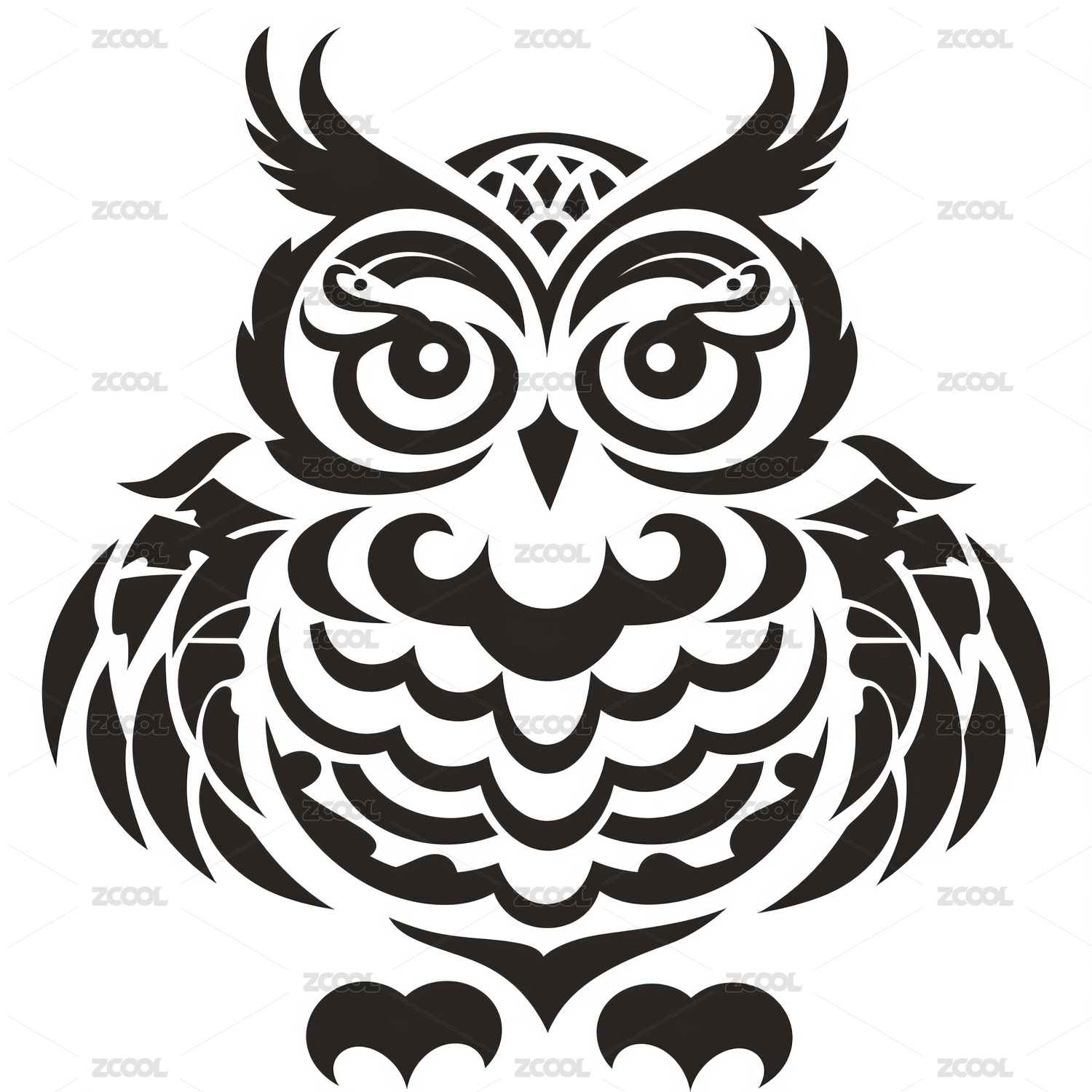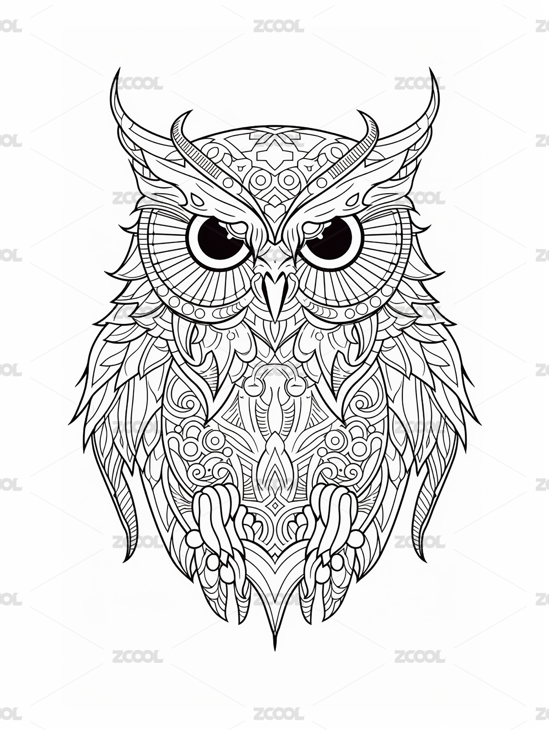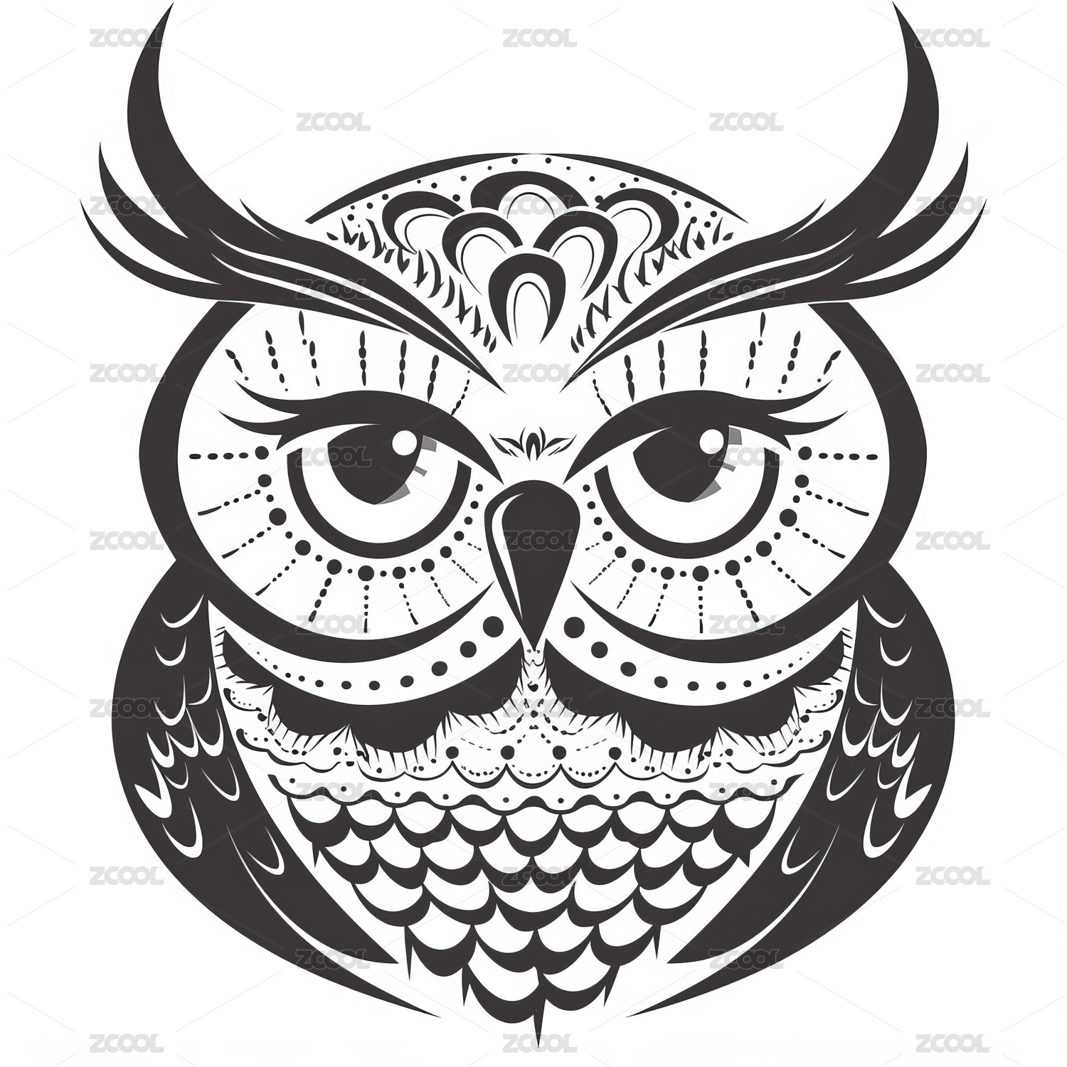 猫头鹰,装饰,黑白,图案,曼荼罗,复杂,艺术,设计,鸟类,羽毛