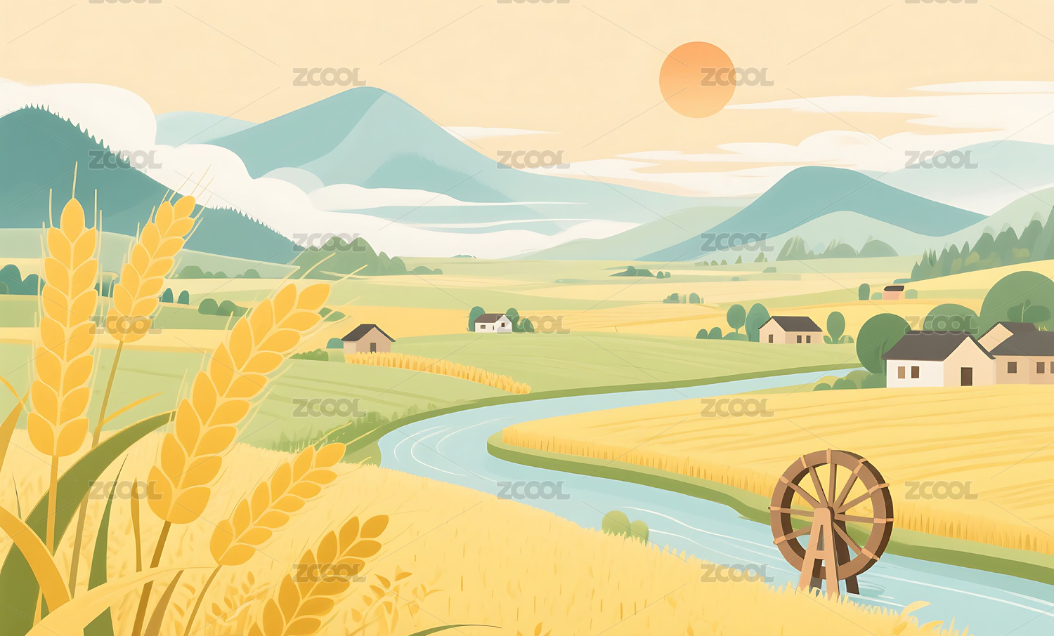 稻田,黄昏,山脉,村庄,房屋,田园风光,乡村,自然,景观,平原