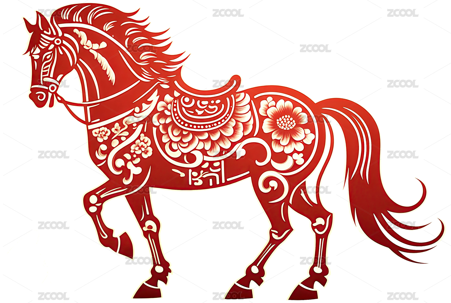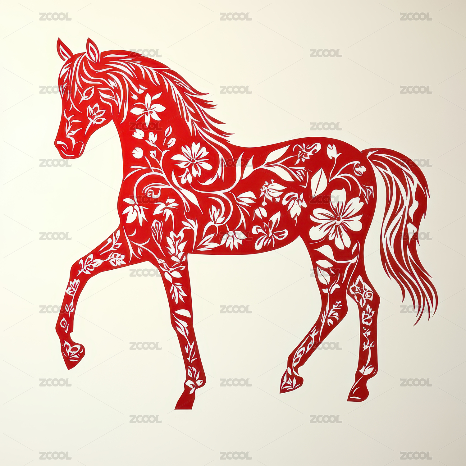 绘画,元素,红色,喜庆,新年,春节,白色背景,单色,插画,剪纸
