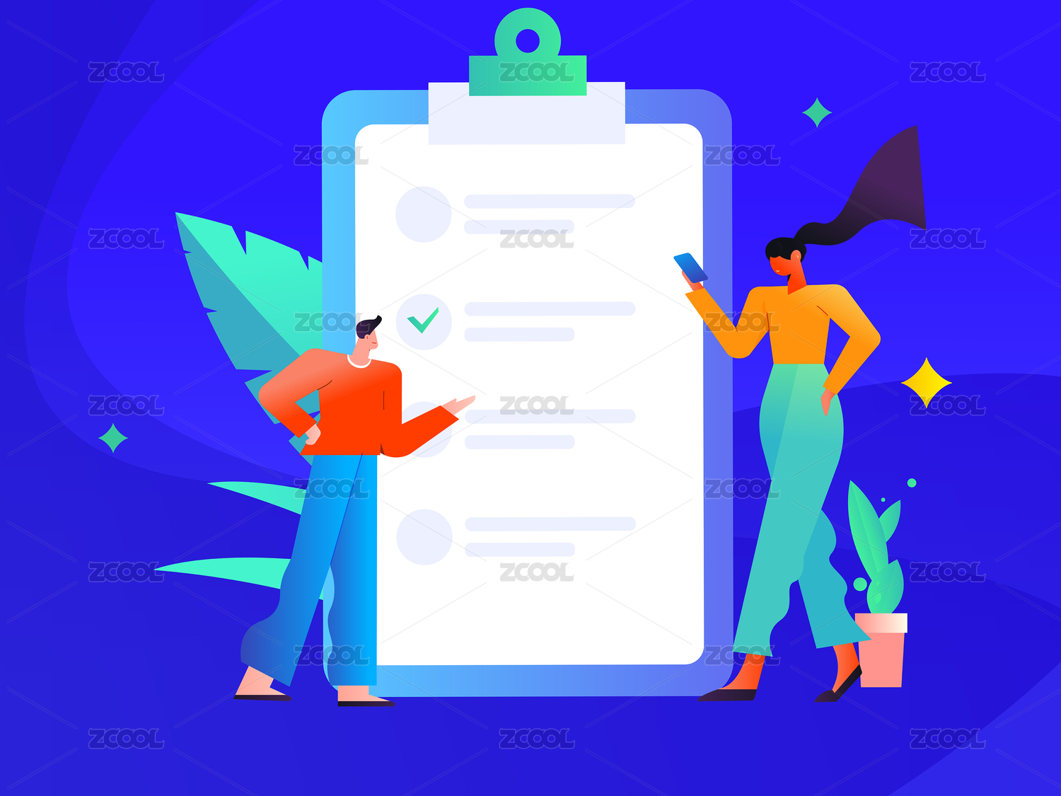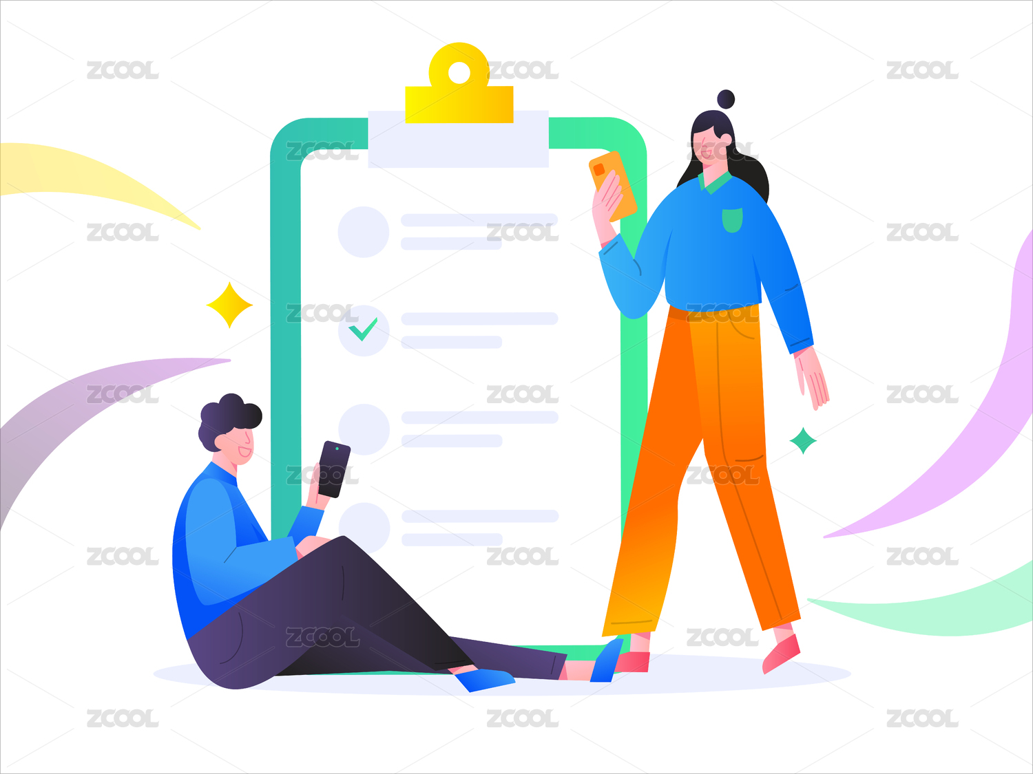 邀请填写问卷调查, 矢量扁平人物场景创意概念插画