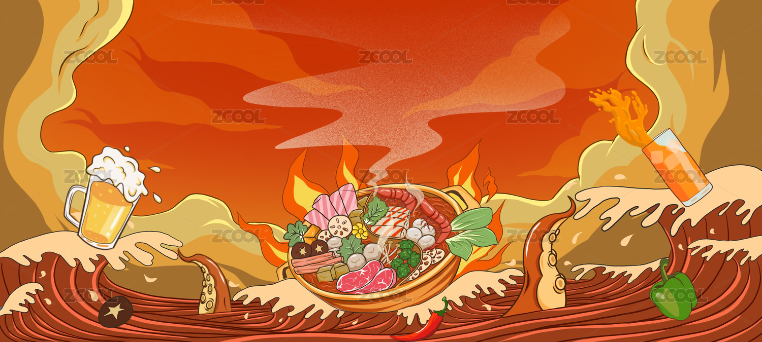 三星堆人物汉堡薯条烤串披萨潮流插画
