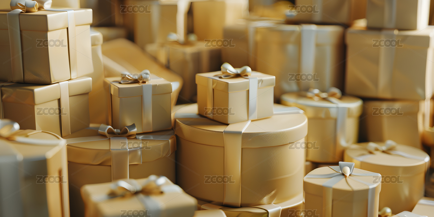金色礼盒堆积