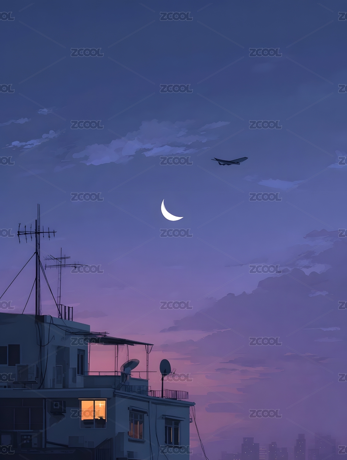 场景,天空,蓝色,云,建筑,月球,月亮,人物,壁纸,猫