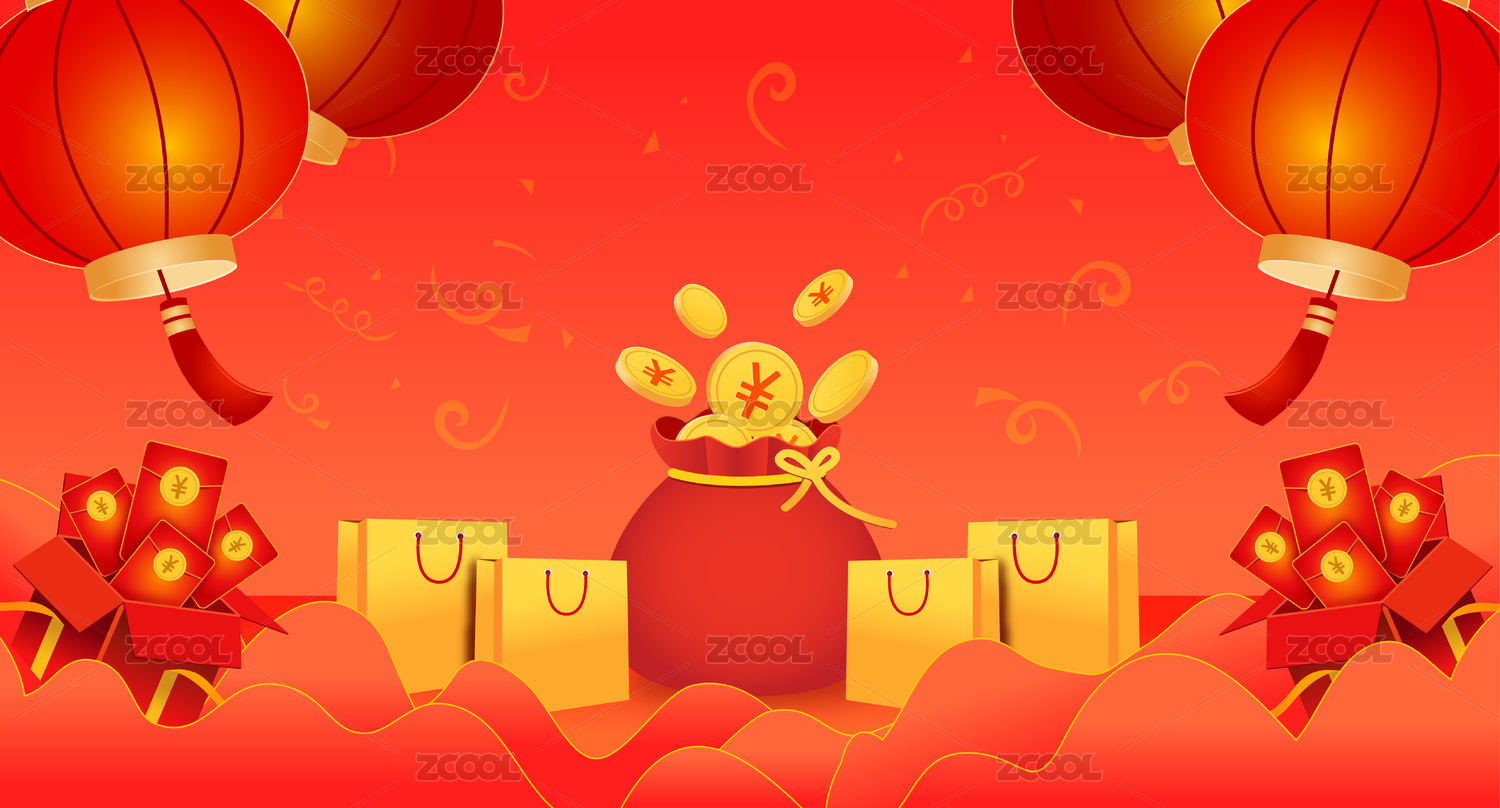 喜庆年货节新年创意钱袋背景
