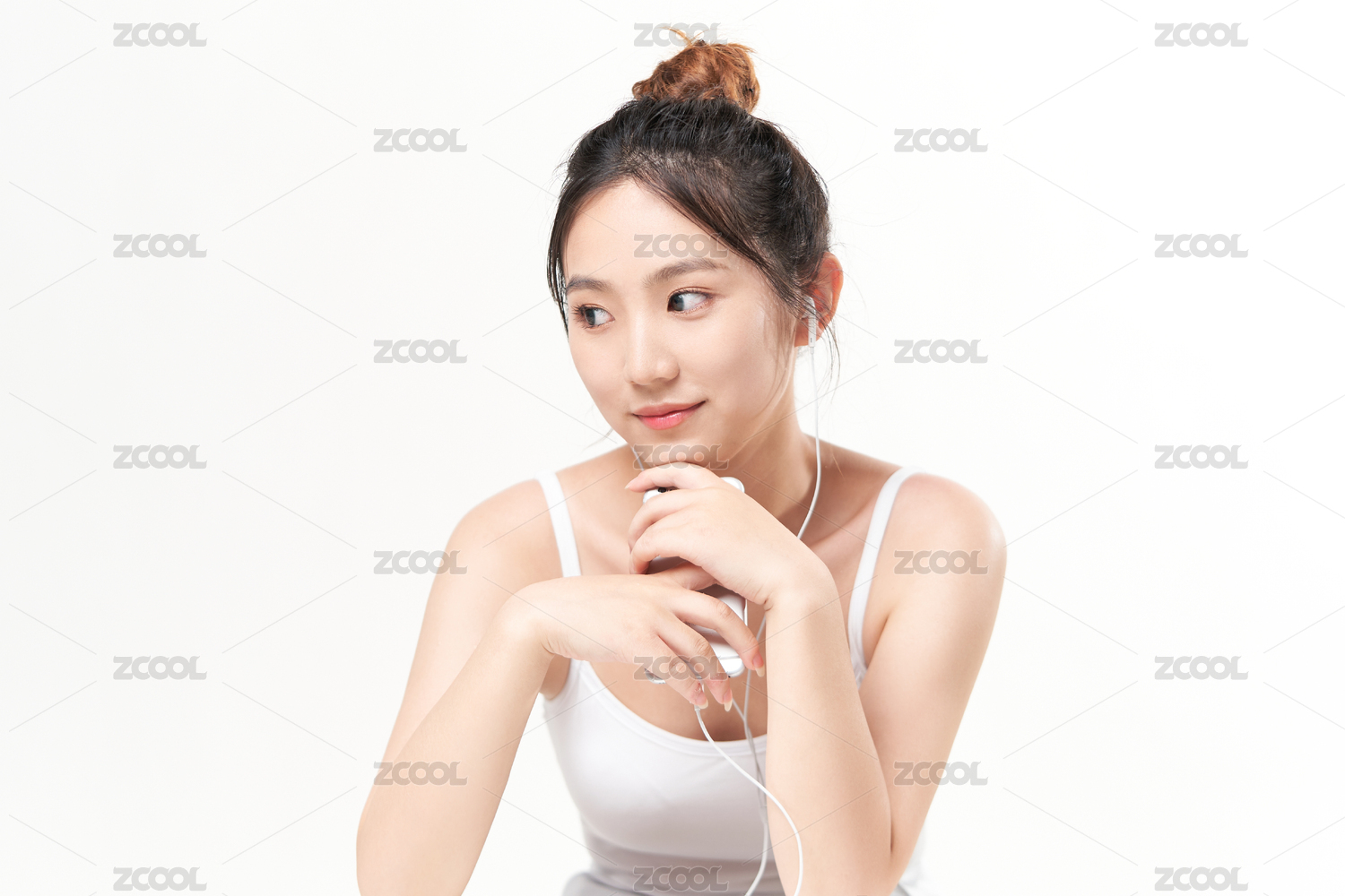 带着耳机正在听音乐的亚洲美女