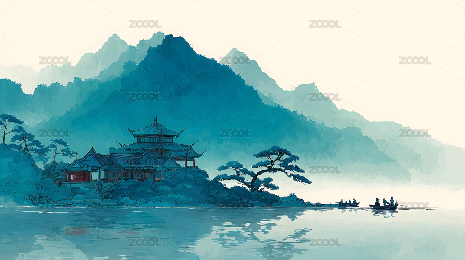 山水人家亭台楼阁,泛舟湖上诗情画意
