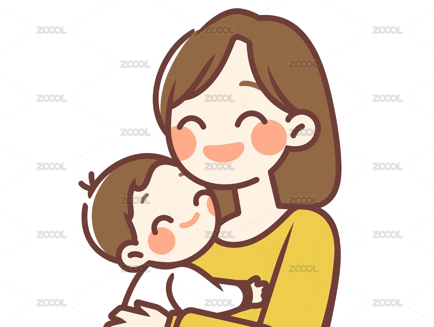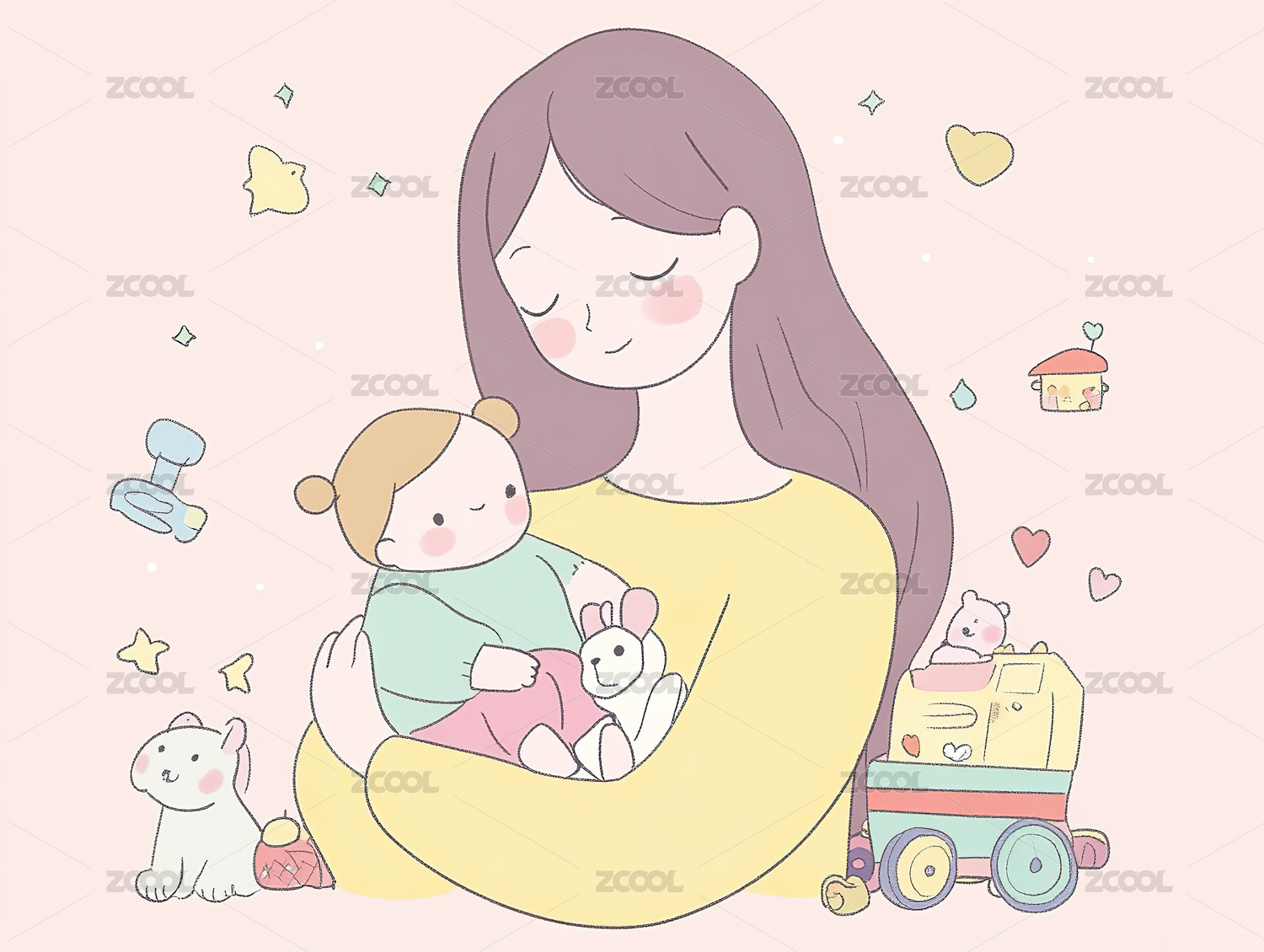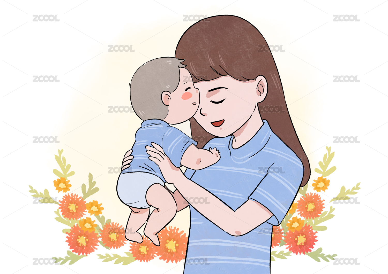 卡通,插画,亲子,妈妈,宝宝,母亲节,母爱,母婴,教育,粉色