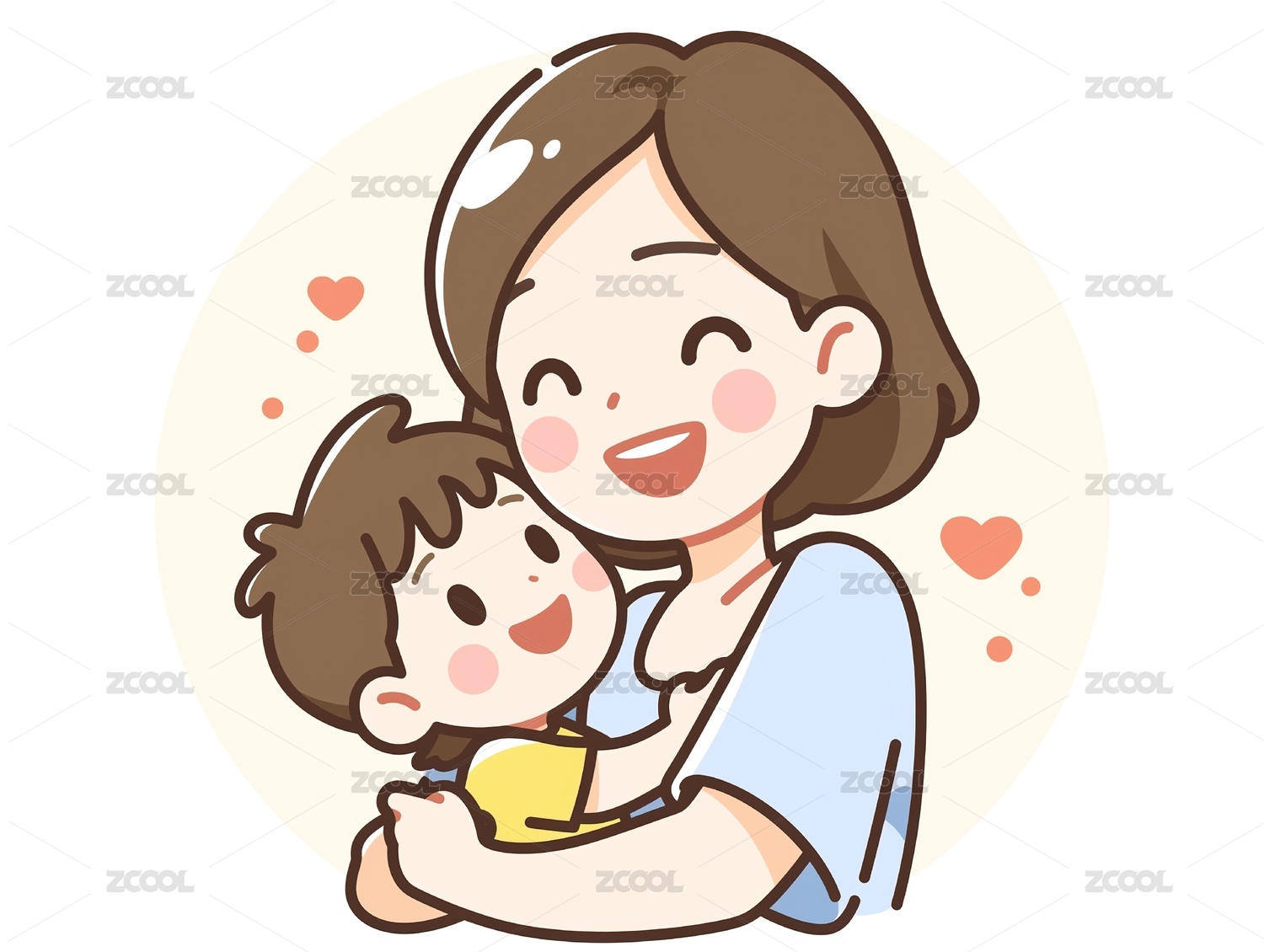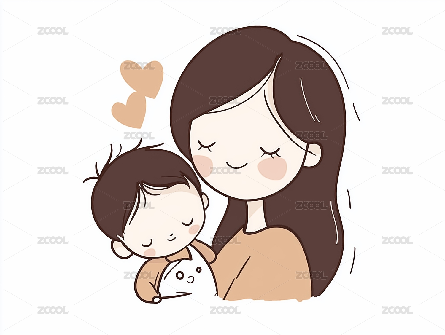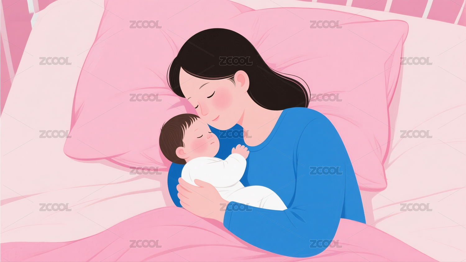 卡通,插画,亲子,妈妈,宝宝,母亲节,母爱,母婴,教育,粉色