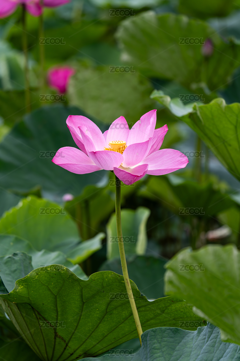 一朵直立盛开的荷花