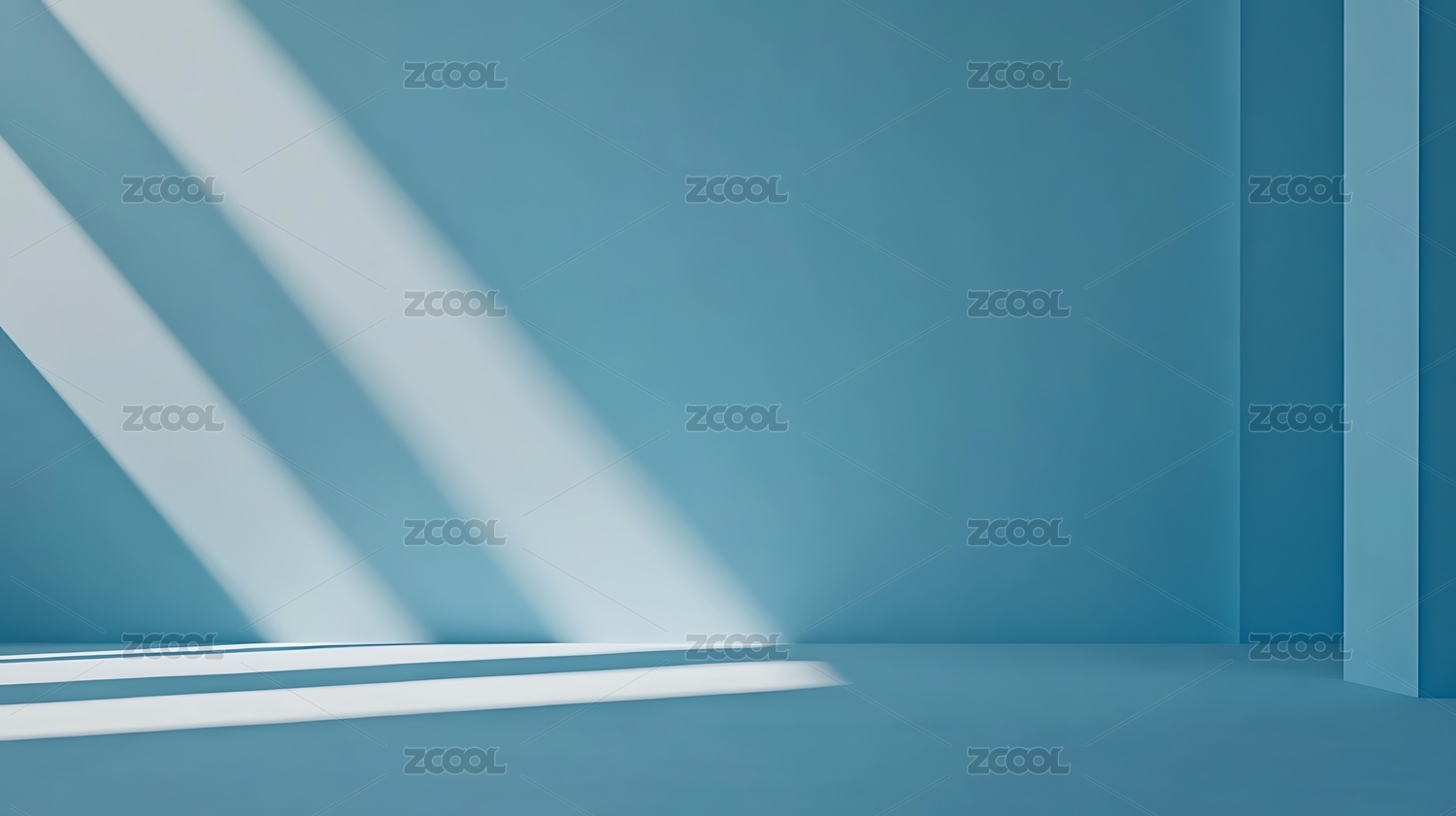 蓝色墙面光影室内场景