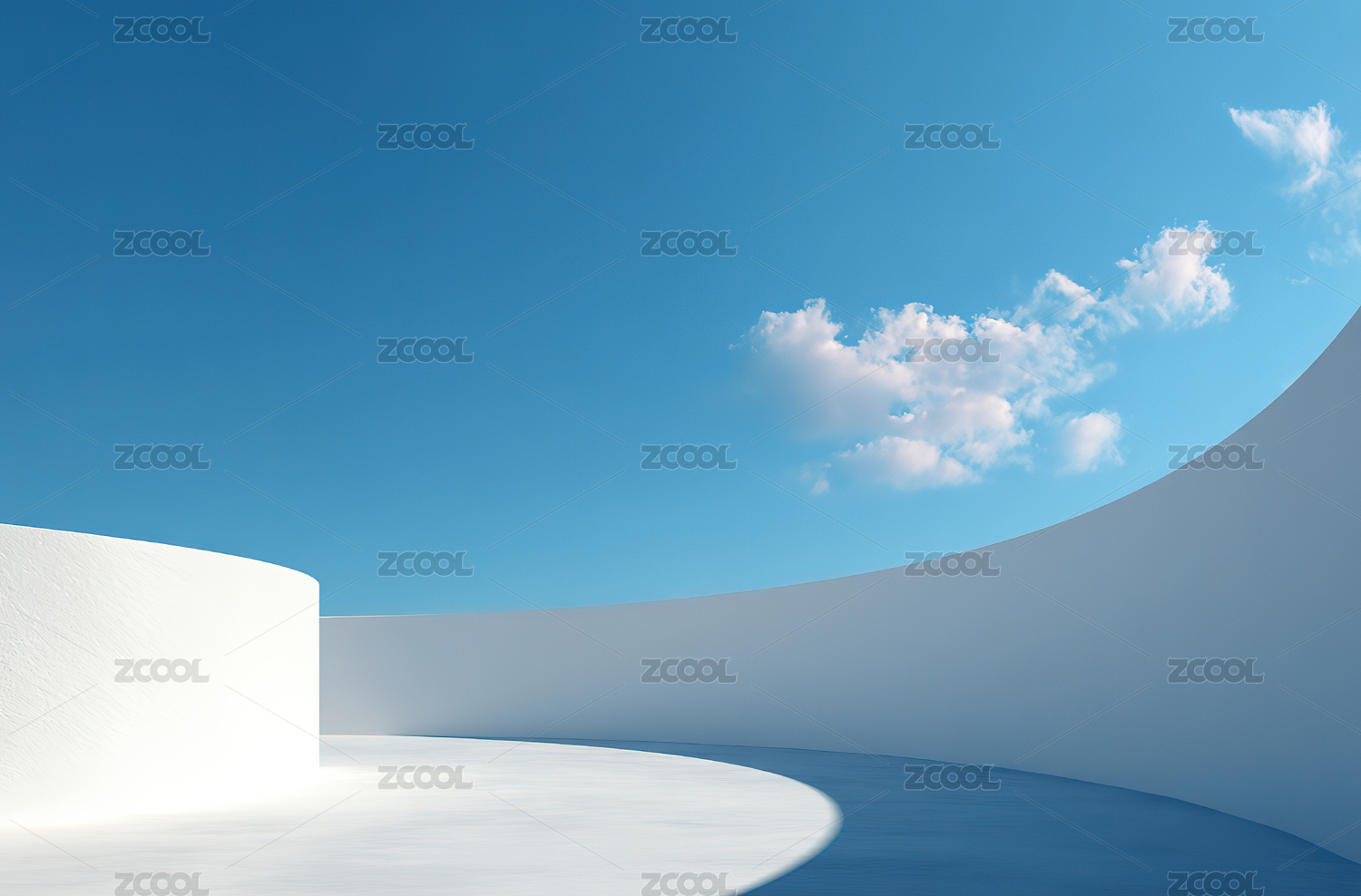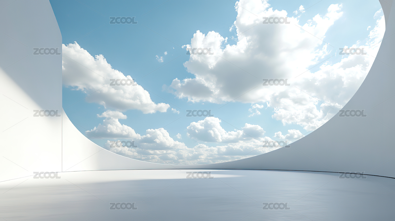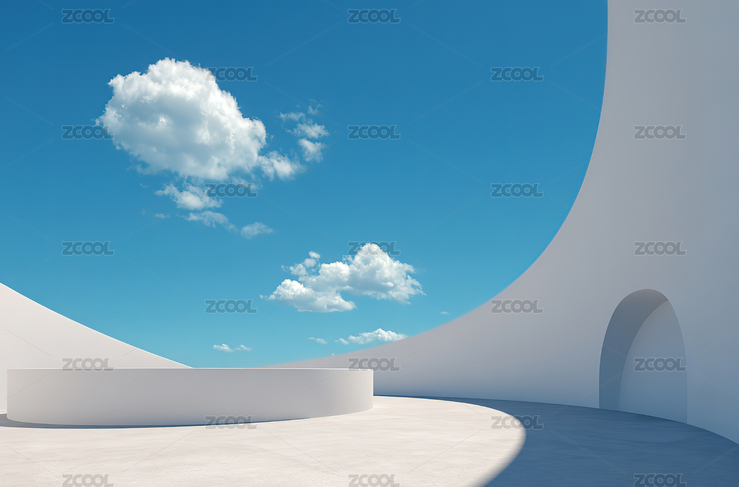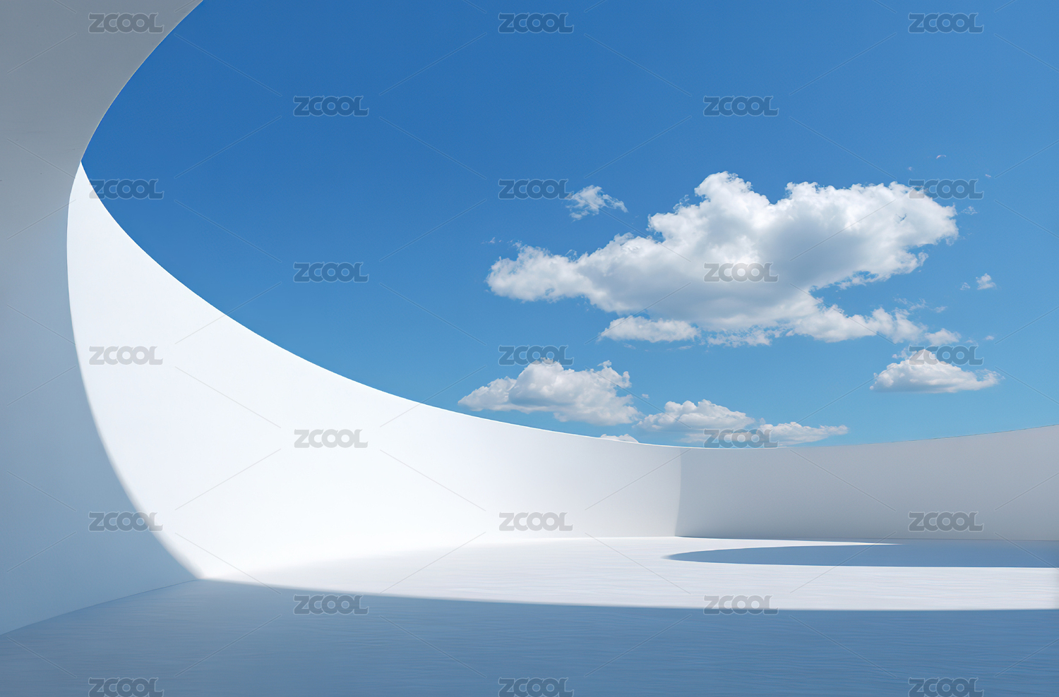 白色,现代,清新,氛围,光线,简约,空间,弧形,天空,白云