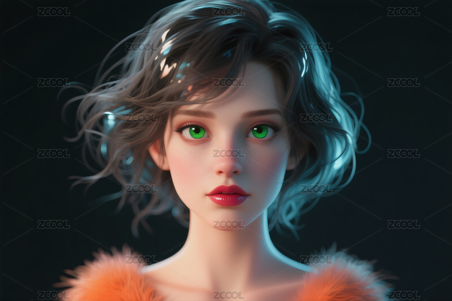一位红发绿眼女孩的精致肖像,面带雀斑