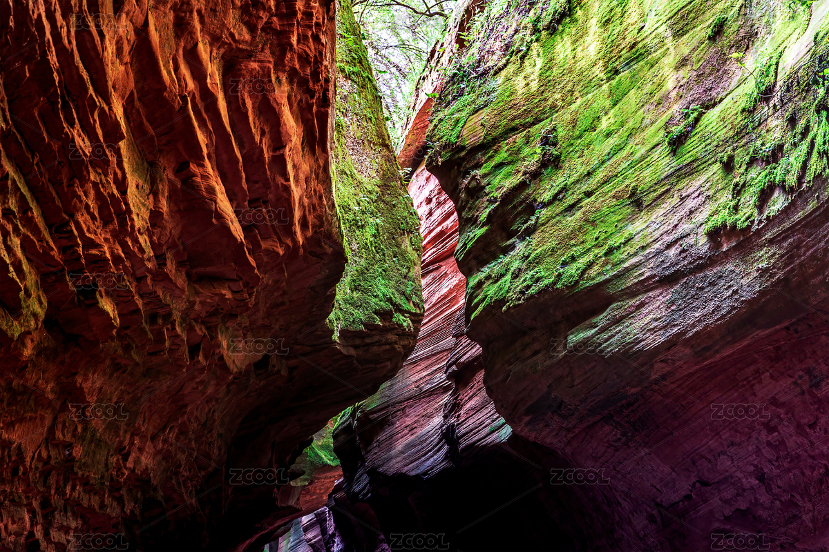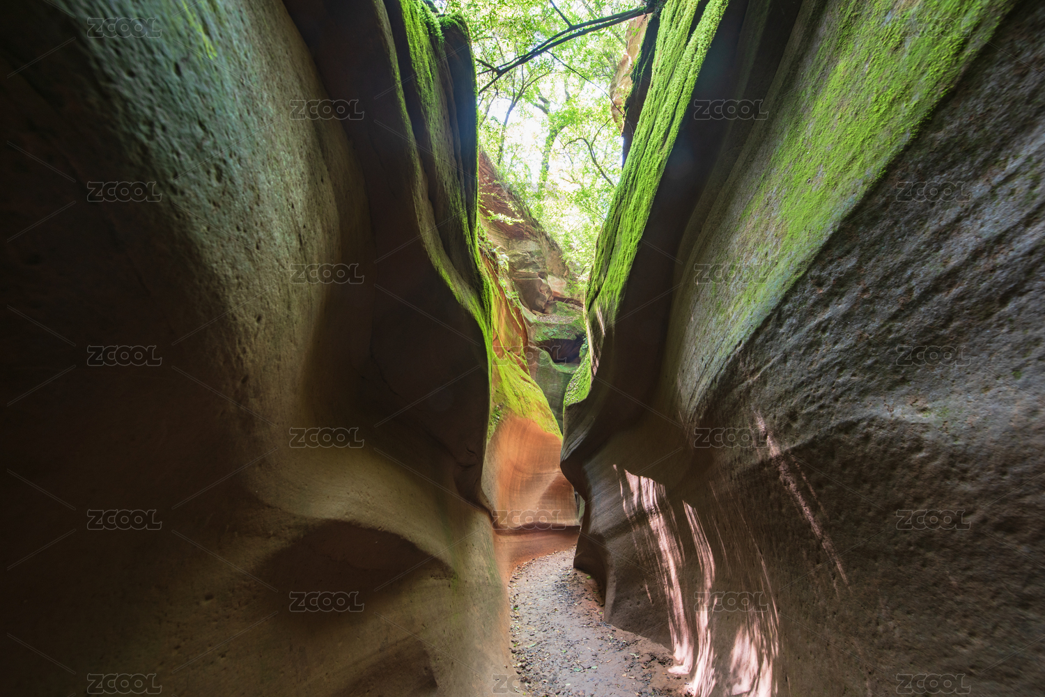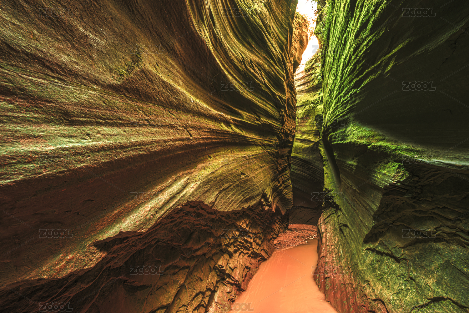 陕西靖边波浪谷峡谷仰望的绿意与光芒