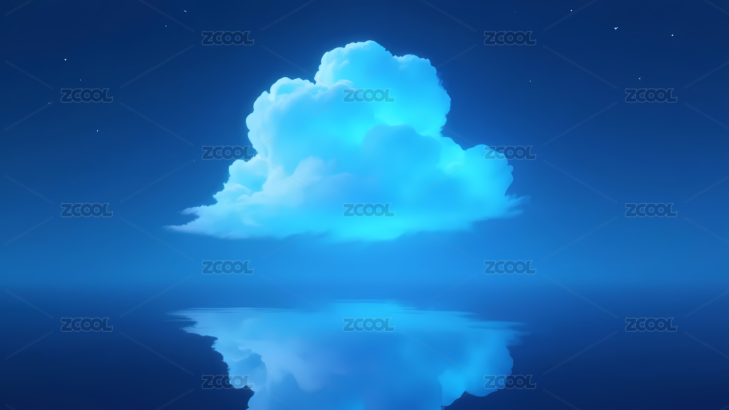 夏天晴朗湛蓝天空的彩虹云祥云3D立体插画