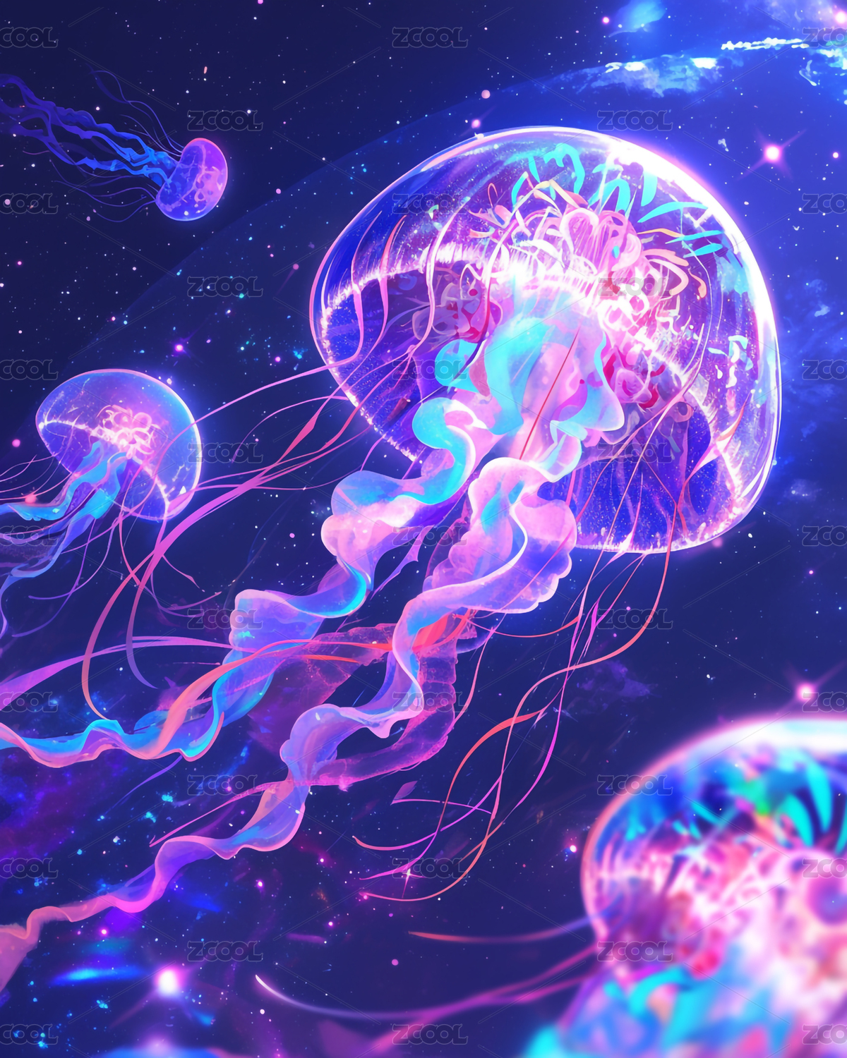 插画,水母,发光,插图,光,动态,梦幻,炫酷,运动,海蜇
