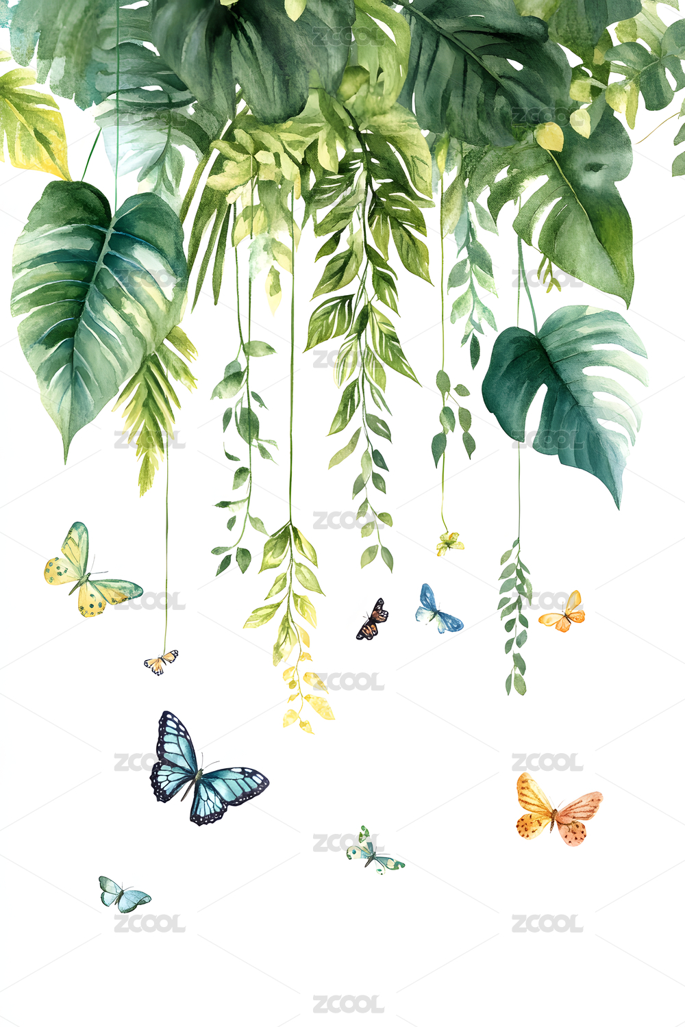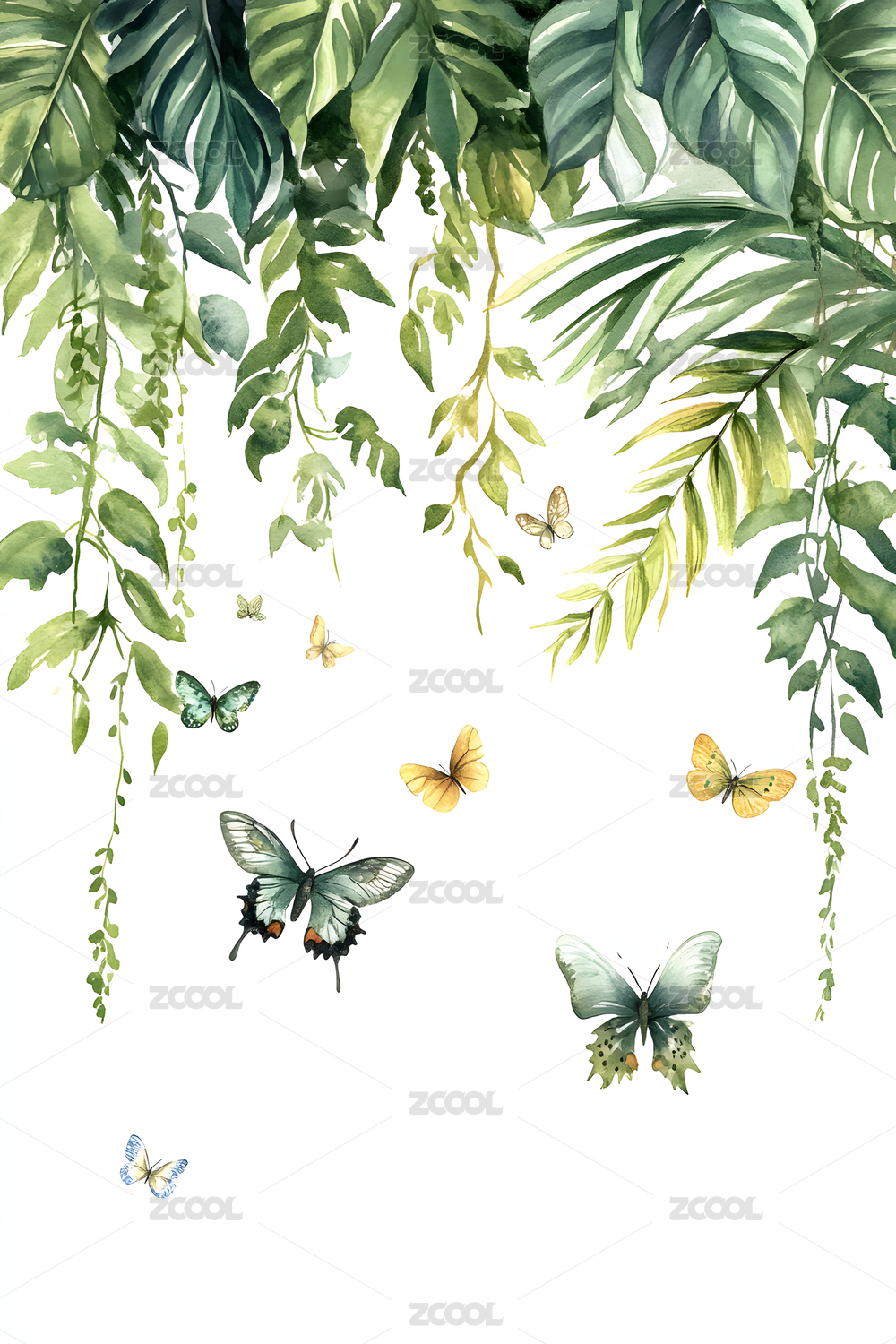 绿色树叶水彩插画