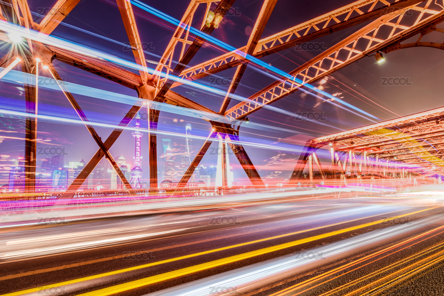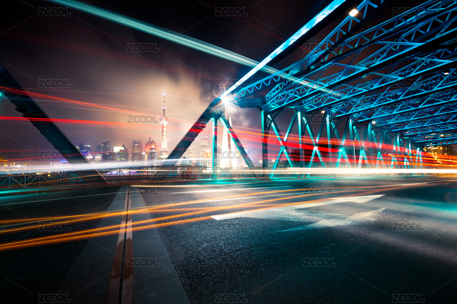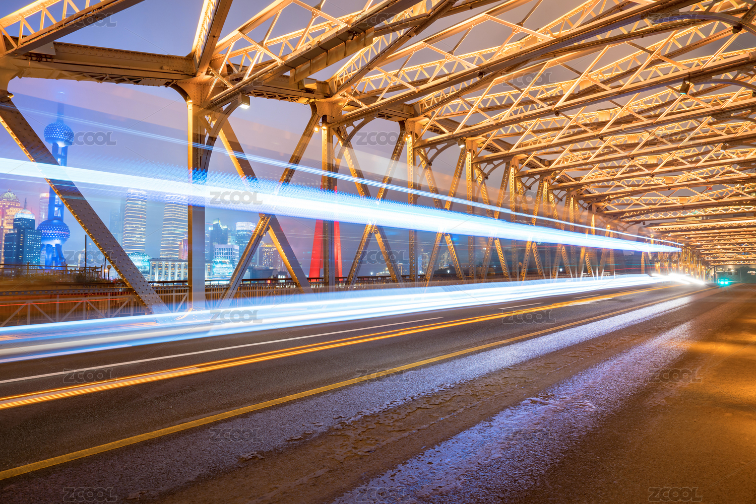 上海外白渡桥 飞驰的汽车尾灯形成的光的轨迹