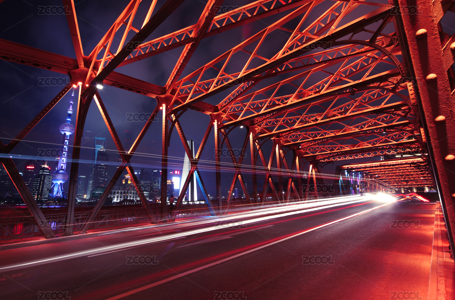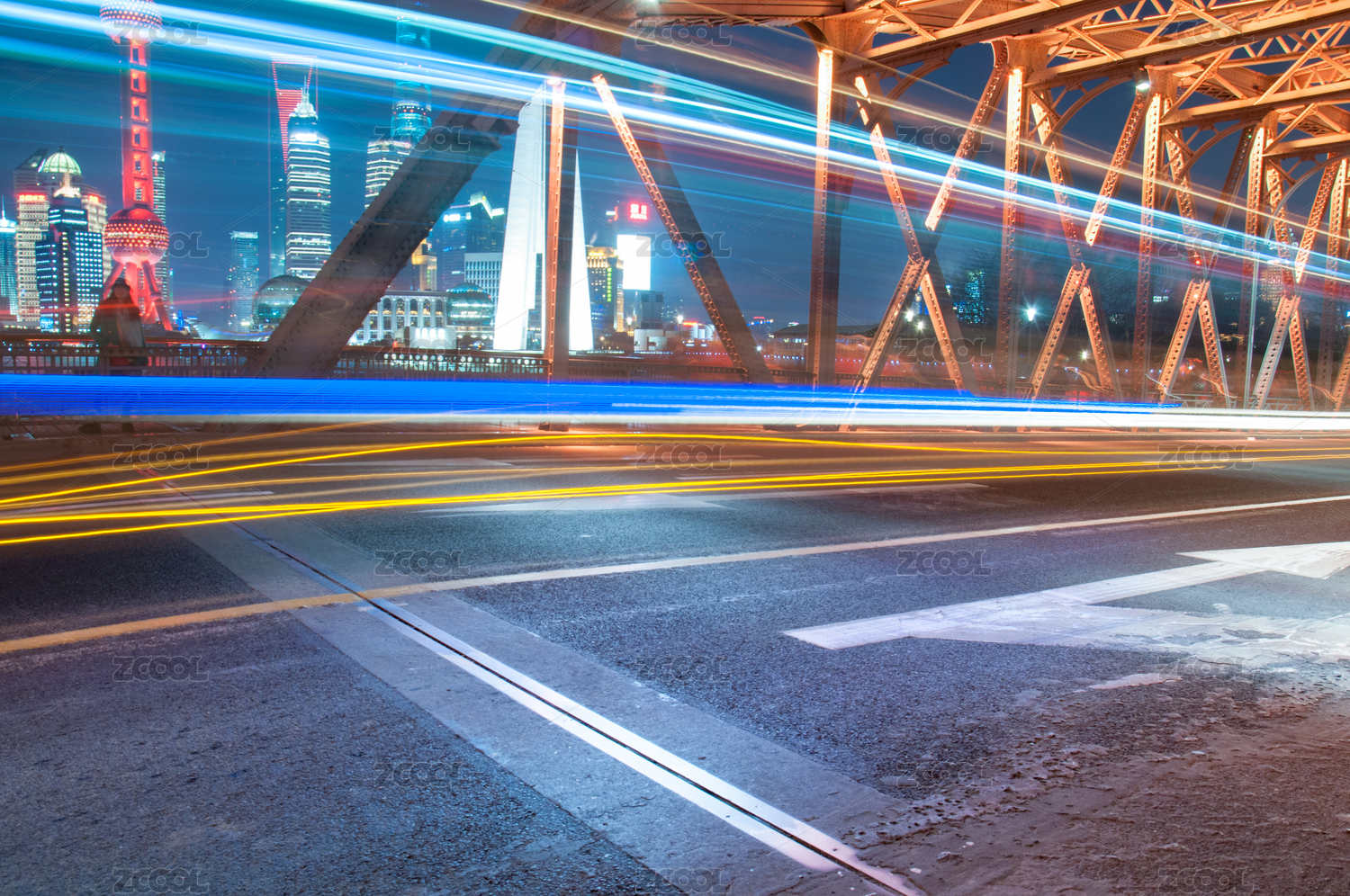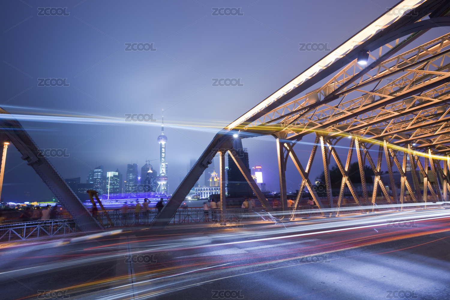 上海外白渡桥 飞驰的汽车尾灯形成的光的轨迹