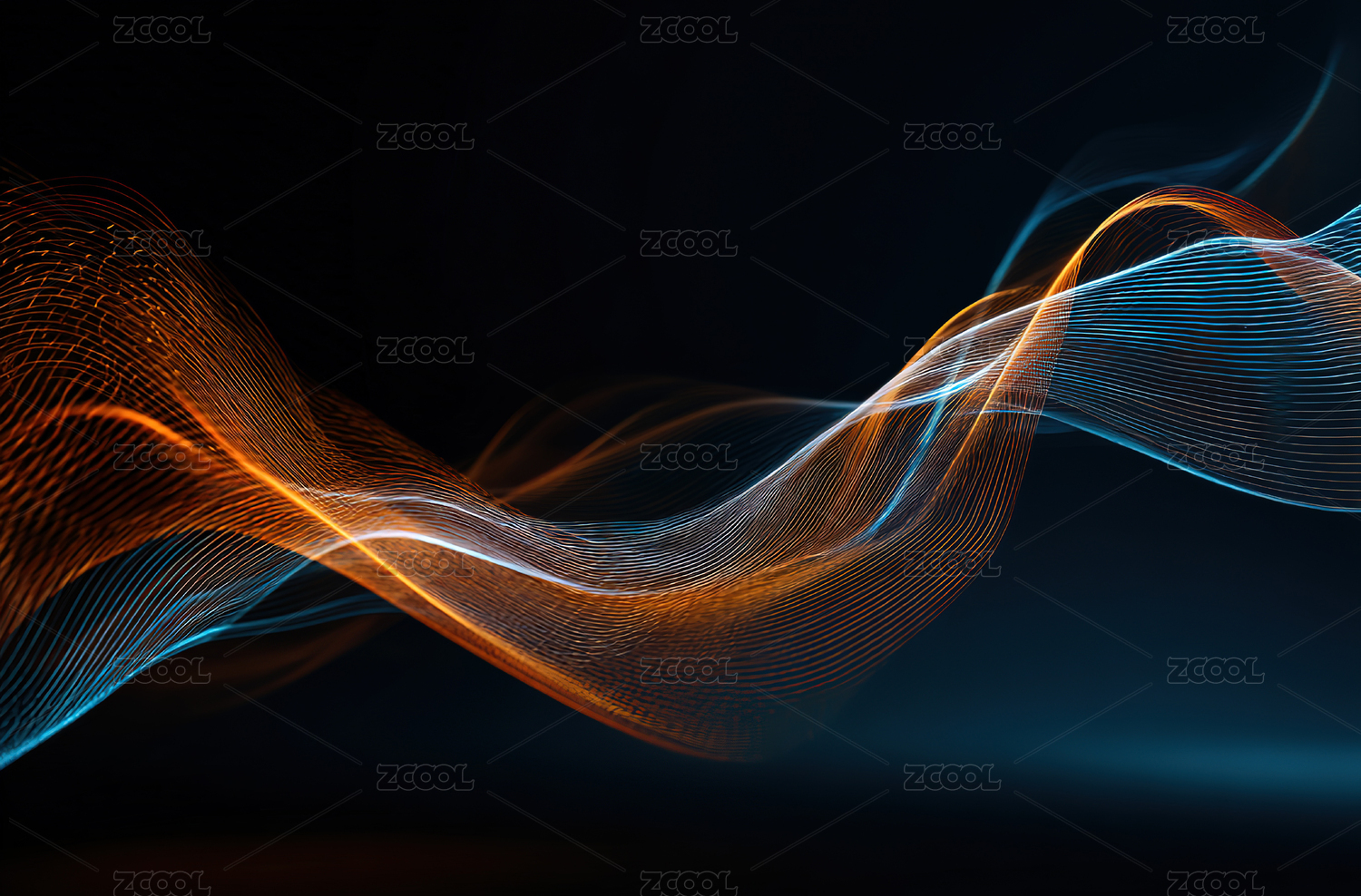 橙蓝波浪曲线黑色背景