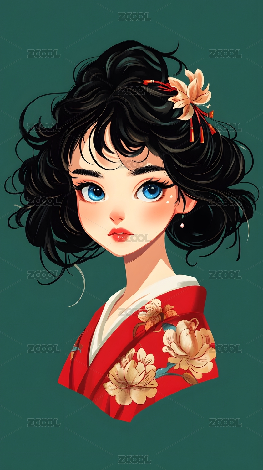 国潮女孩头像插画