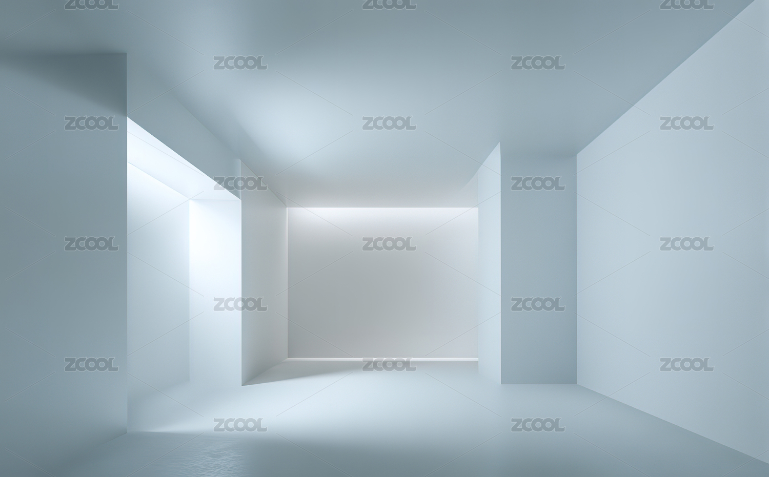 3D,几何,空间,场景,蓝色,展台,创意,抽象,室内,现代