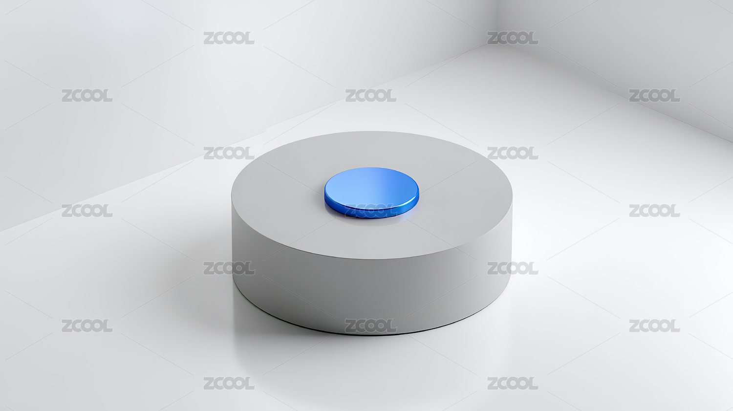 灰色圆柱体上的蓝色圆形物体