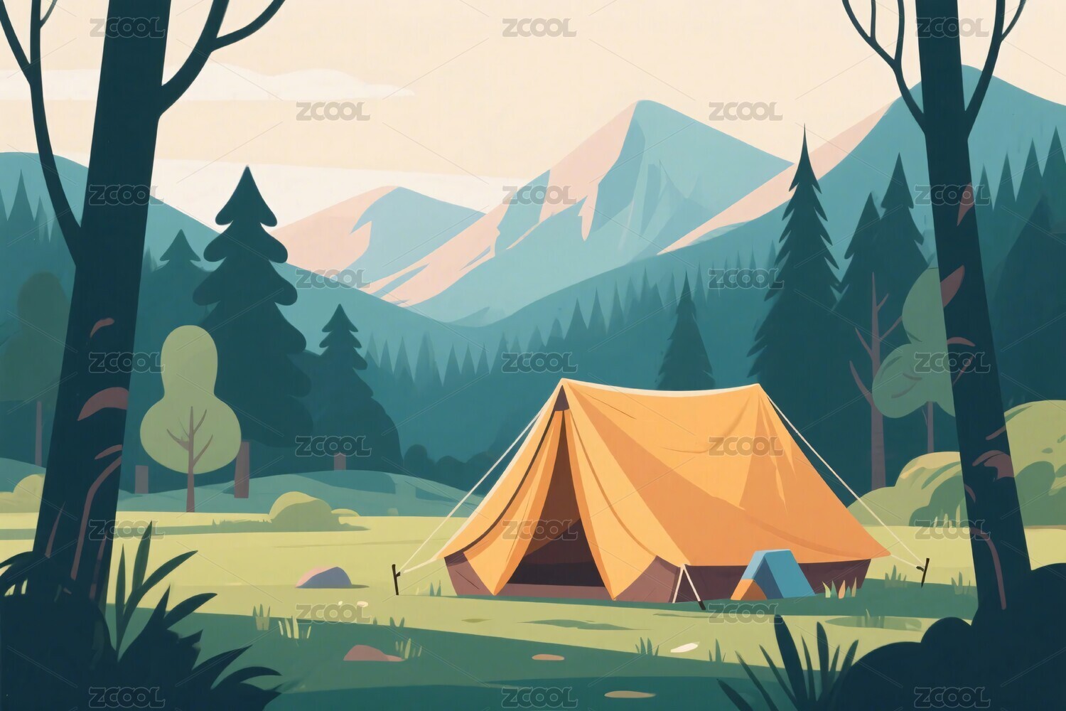 露营,帐篷,插图,树木,树林,自然,风光,夜晚