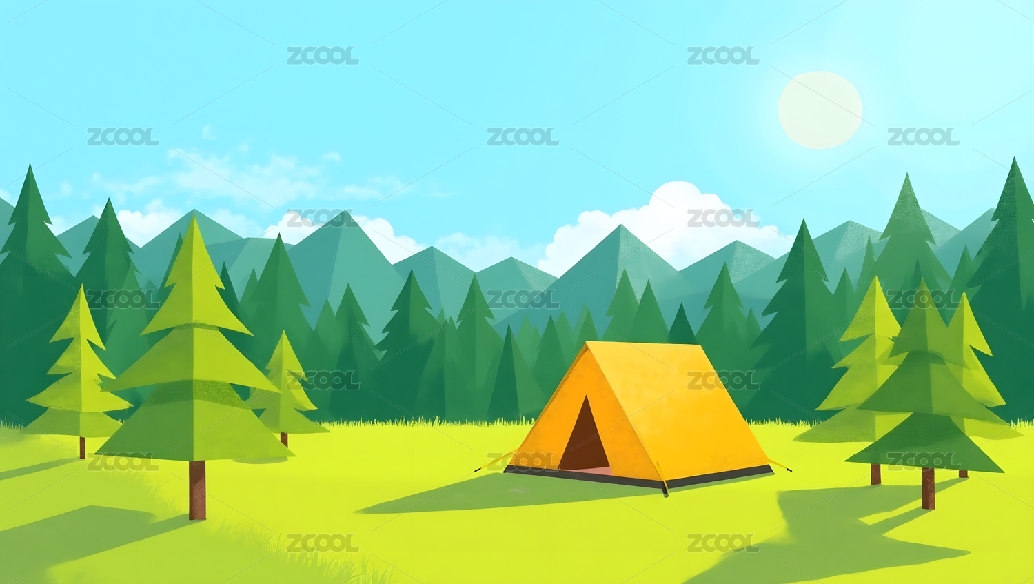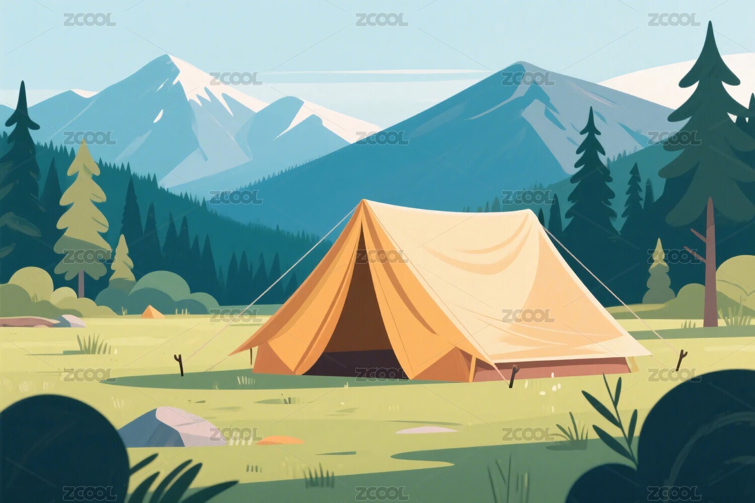 夏天大暑暑期露营帐篷野餐户外朋友社交插画