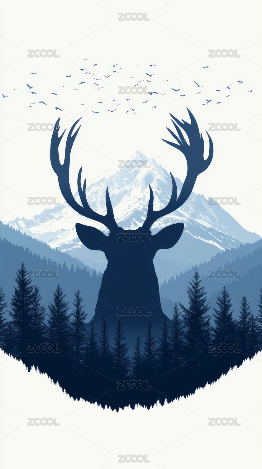 下雪天立冬大雪大寒林海雪原白鹿插画
