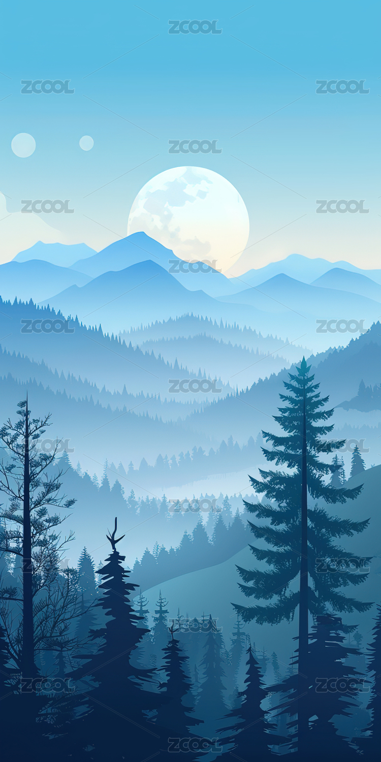 AIGC202404,插画,手绘,森林,树木,树,雪,寒冷,冬天,无人