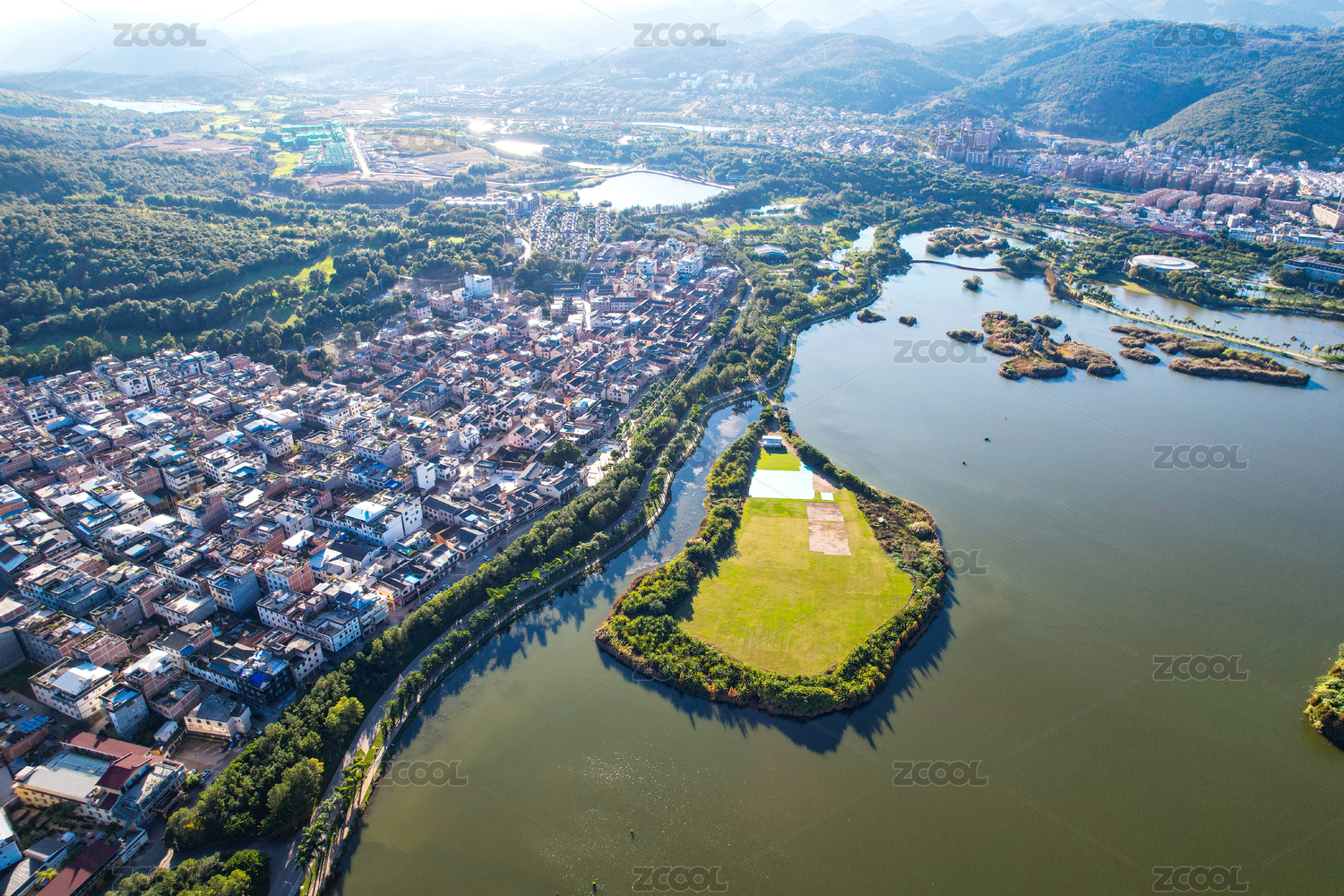 勐罕镇,建筑,风景,航拍视角,天空,城市,地形,宁静,澜沧江,航拍