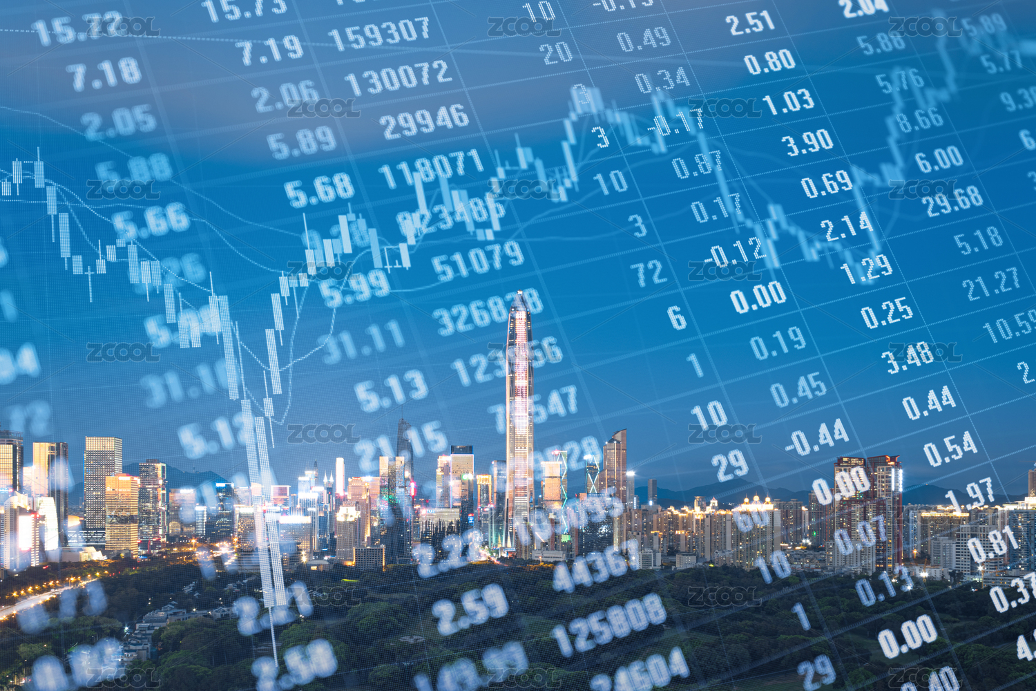 深圳城市风光和股票金融概念