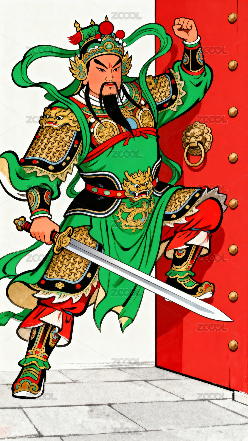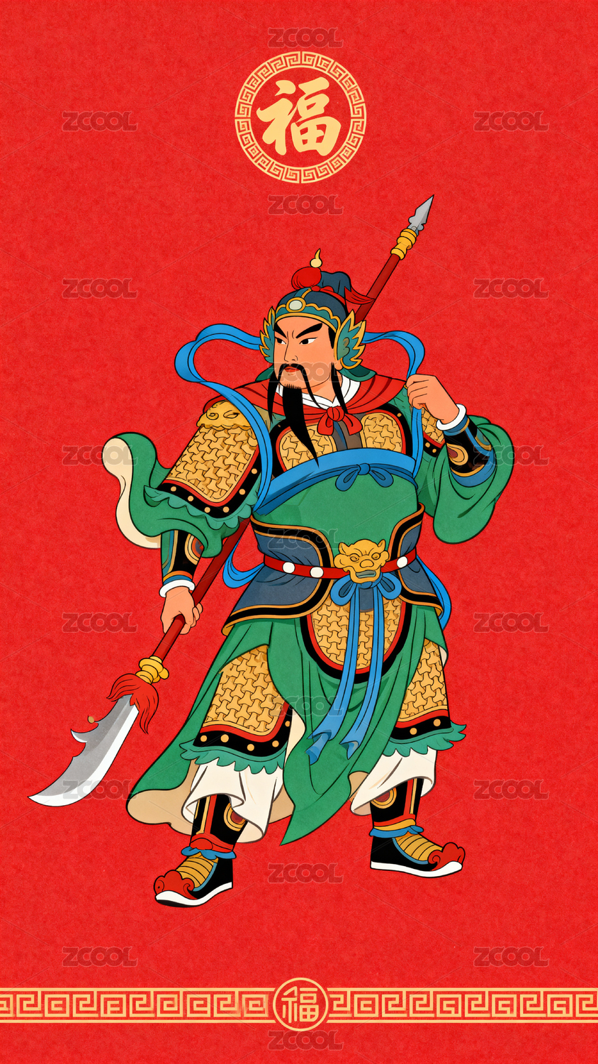 门神,武将,三国,关二爷,人物,插画,关公,关羽,古装,中国