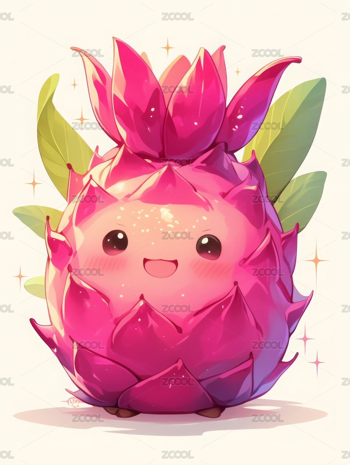 卡通夏日水果可爱的火龙果简笔插画无背景