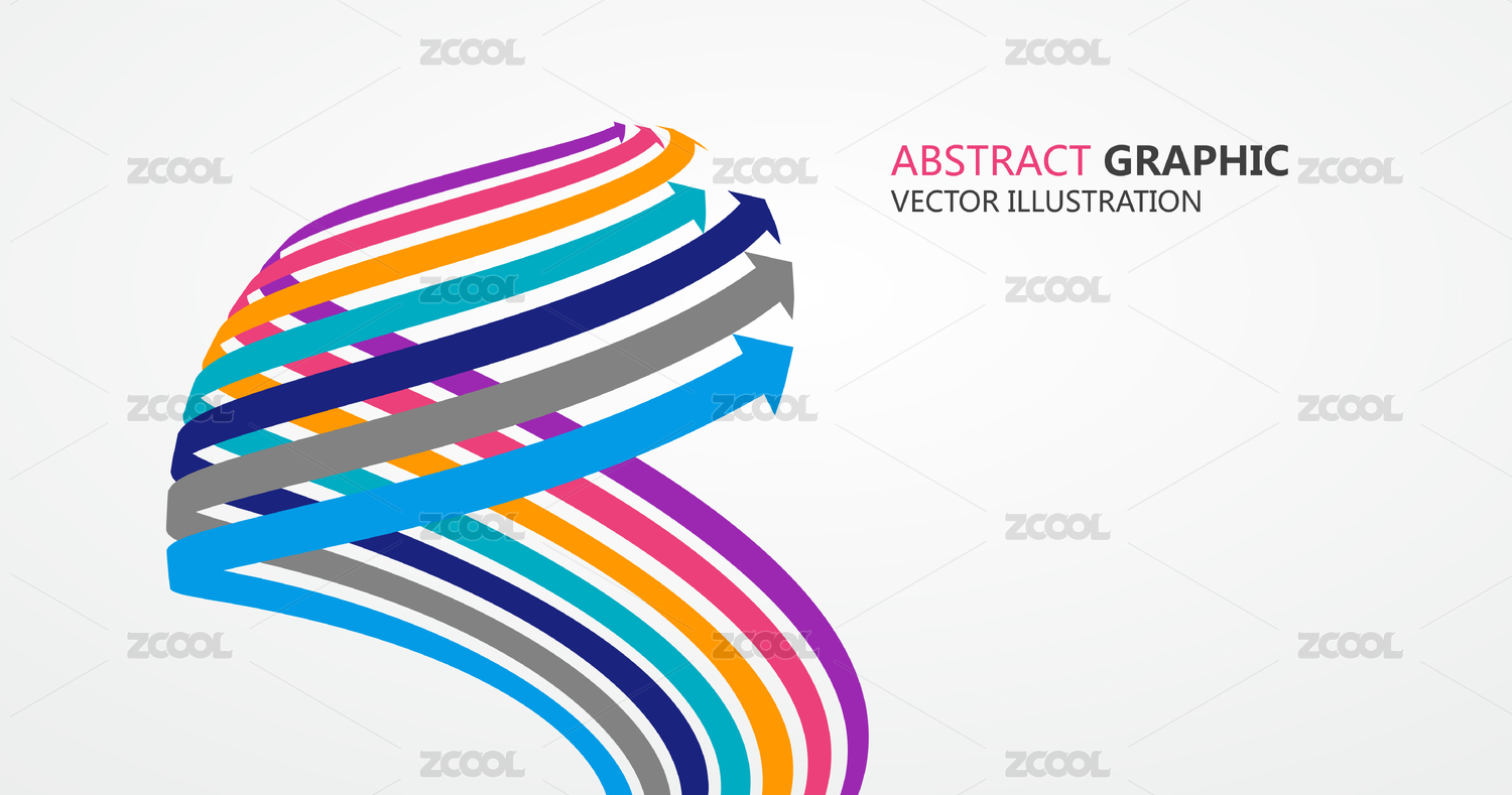 彩色动感线条、透视图形、彩色丝带、海报背景图。